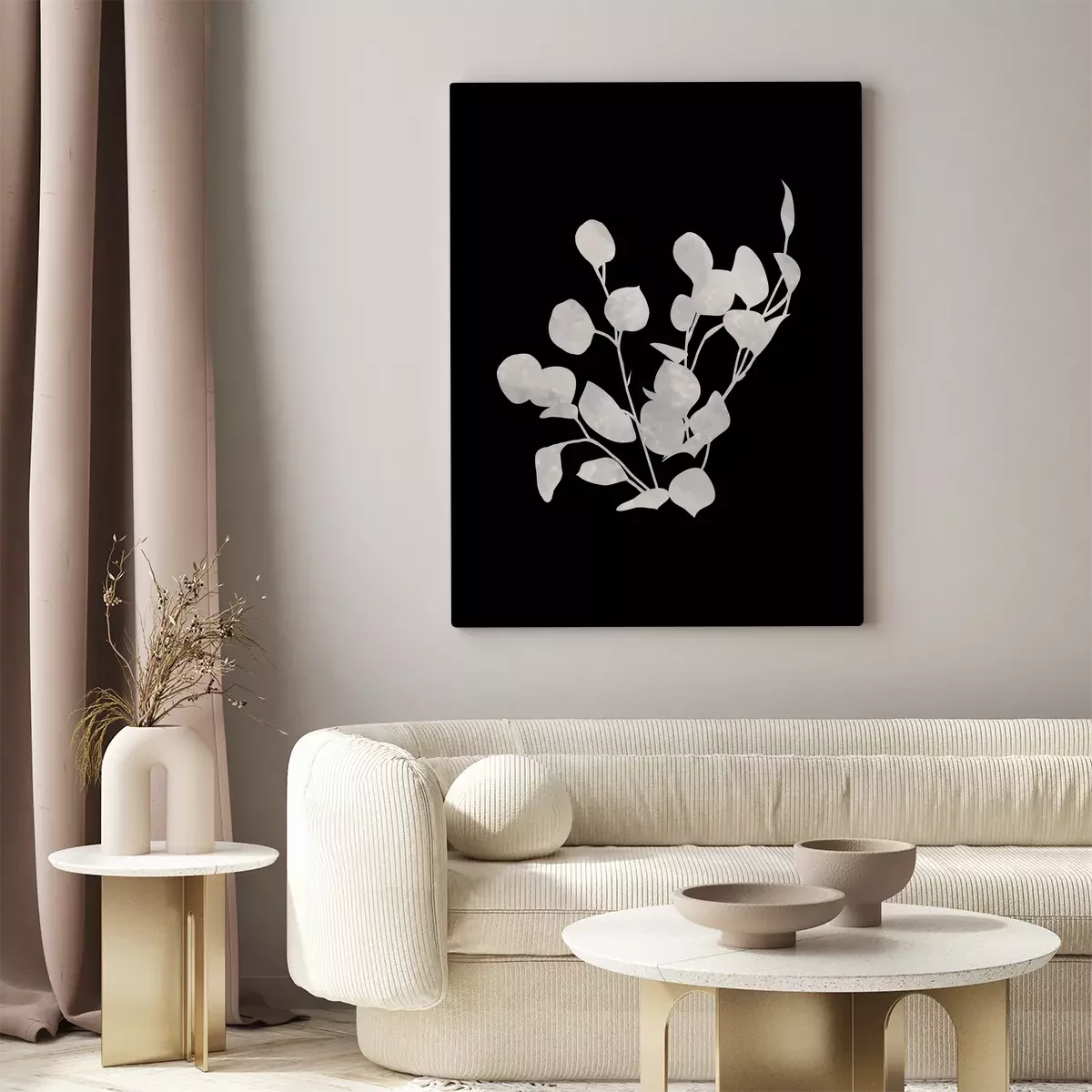 Verzweigte, leuchtende blätter auf schwarzem hintergrund