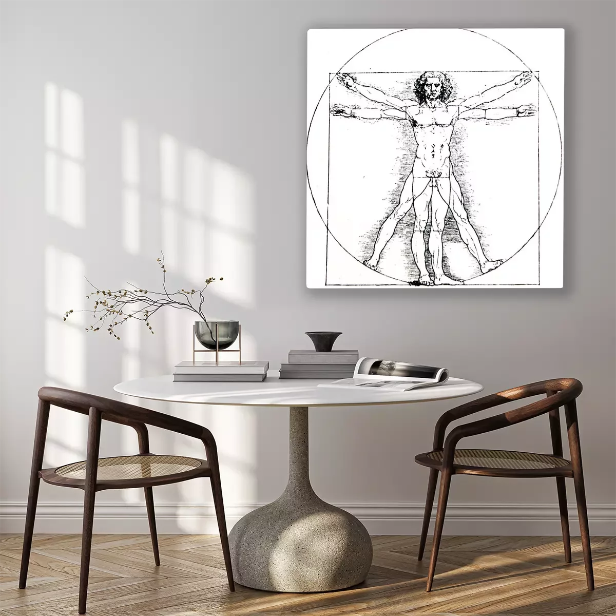 Bild: Vetruvian human, Measures of Human body by Leonardo da Vinci, illustrated in a vintage book, Leonard de Vinci, Eugene Muntz, 1899, Paris