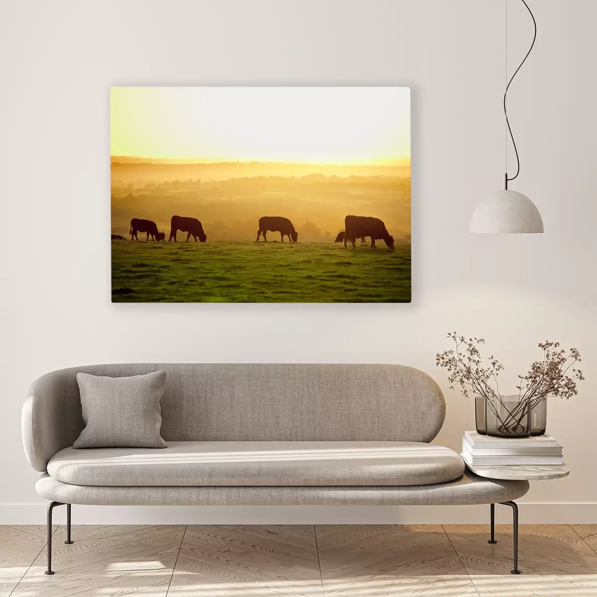 Bild Vieh auf der Weide bei Sonnenuntergang