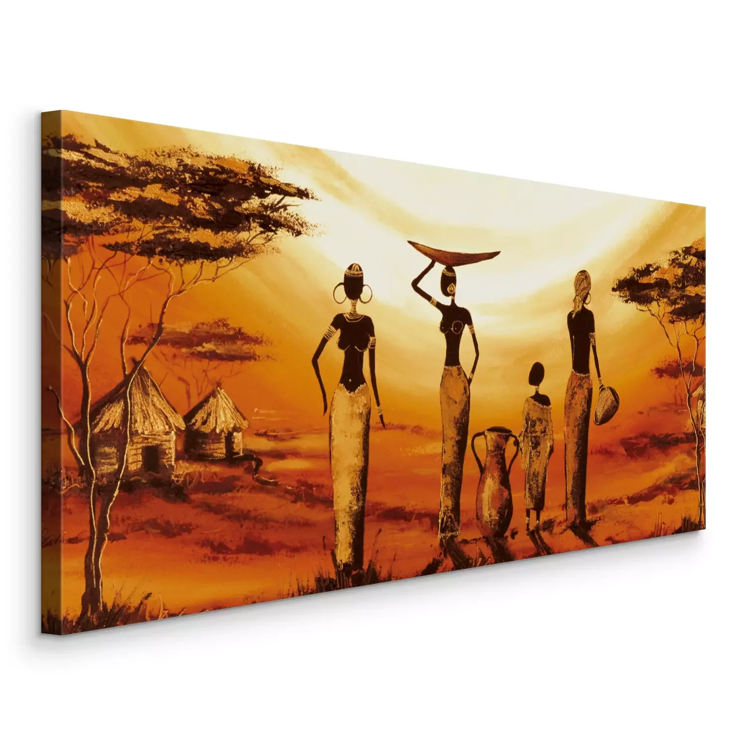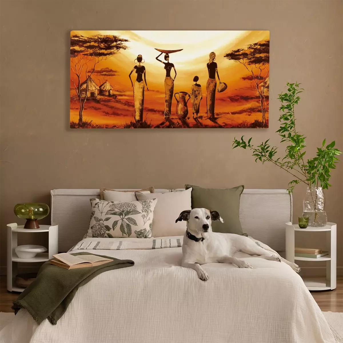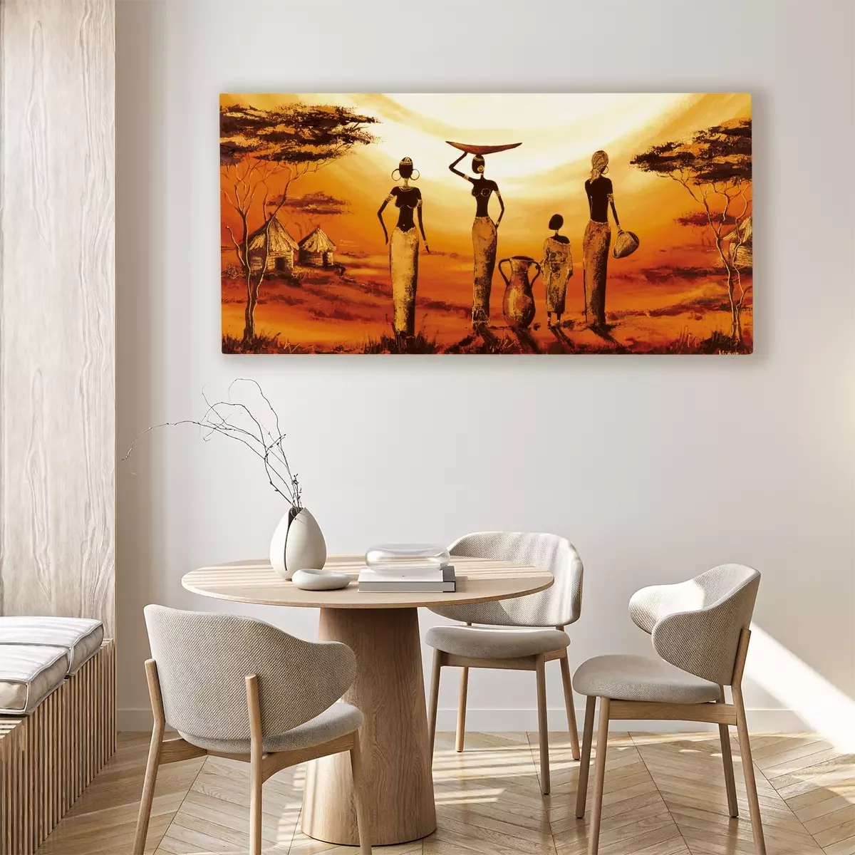 Vier afrikanische frauen vor dem hintergrund eines sonnenuntergangs