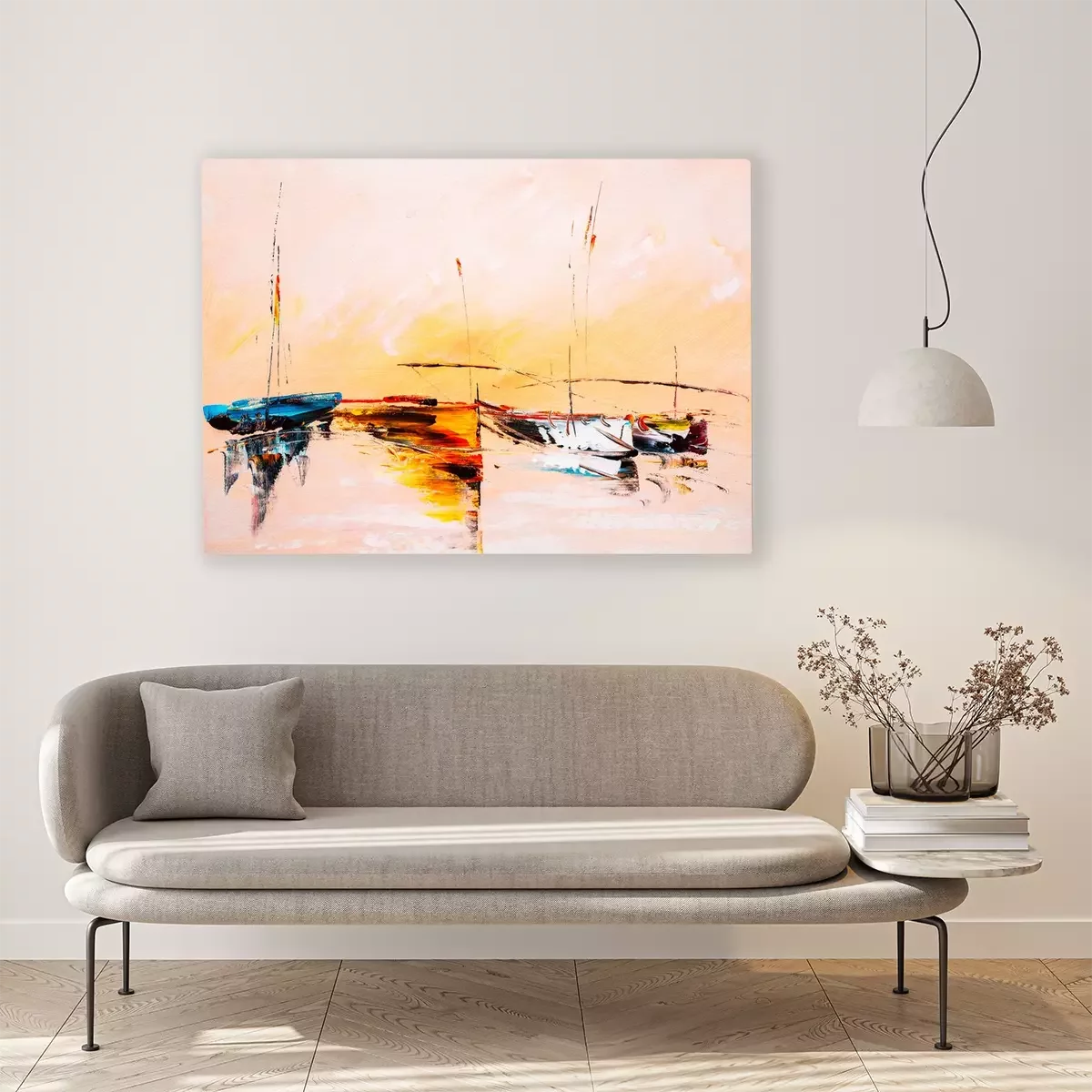 Farbenfrohe Darstellung mit Segelbooten