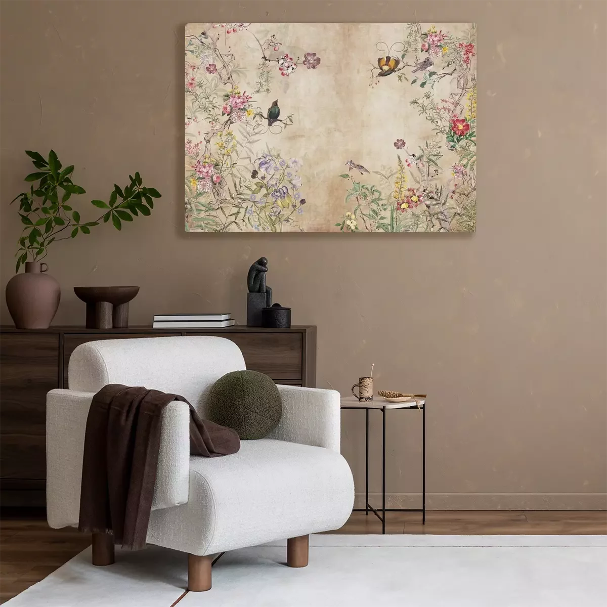 Bild: Vintage-Muster mit Paradiesvögeln und Blumen