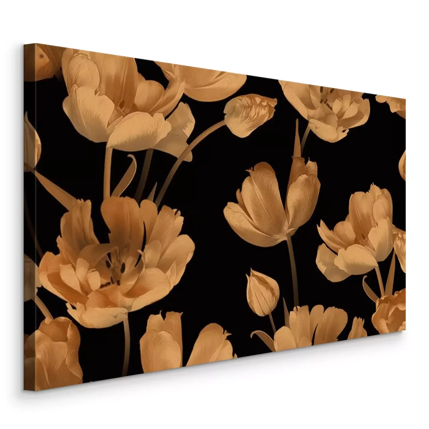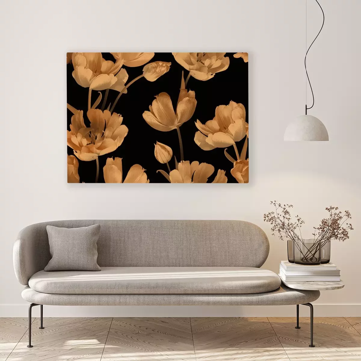 Retro-Muster mit Tulpen auf schwarzem Hintergrund
