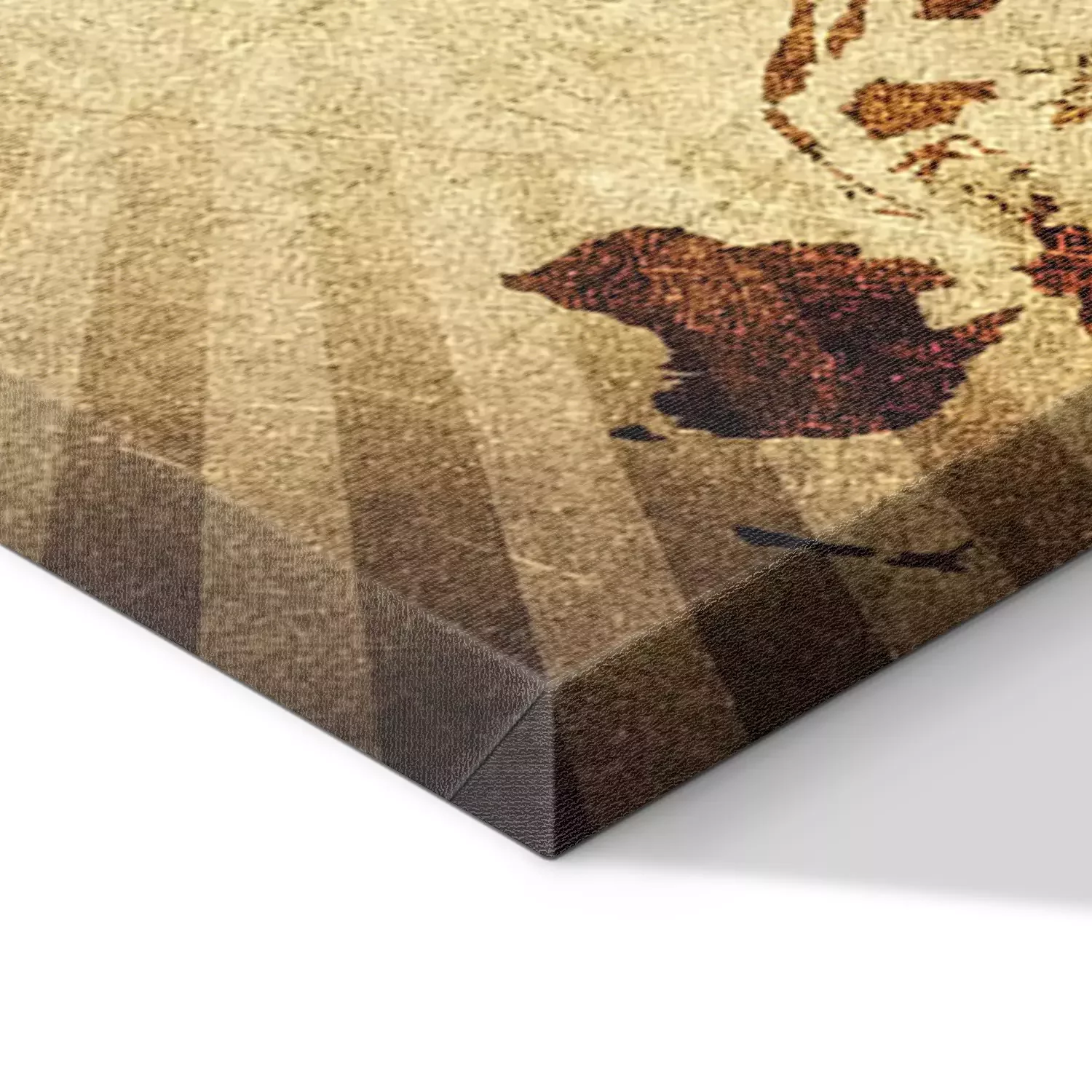 Das Motiv wird auf eine qualitativ hochwertige Leinwand gedruckt, die auf einen Blendrahmen gezogen wird. Da der Aufdruck die Seitenkanten bedeckt, muss das Bild nicht zusätzlich eingerahmt werden. Wir empfehlen außerdem Kompositionen aus mehreren Bildern, die ein harmonisches Ganzes bilden.