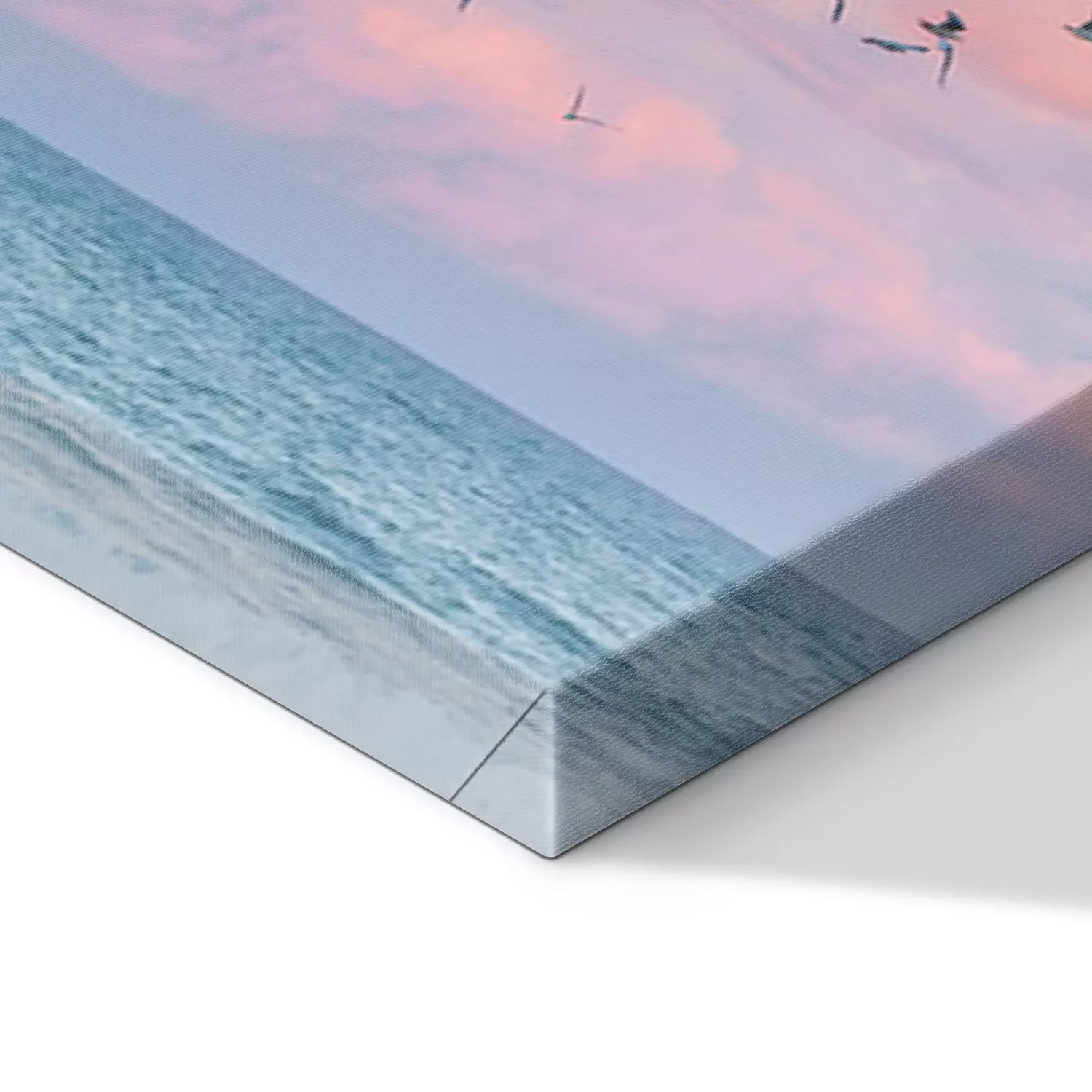 Das Motiv wird auf eine qualitativ hochwertige Leinwand gedruckt, die auf einen Blendrahmen gezogen wird. Da der Aufdruck die Seitenkanten bedeckt, muss das Bild nicht zusätzlich eingerahmt werden. Wir empfehlen außerdem Kompositionen aus mehreren Bildern, die ein harmonisches Ganzes bilden.