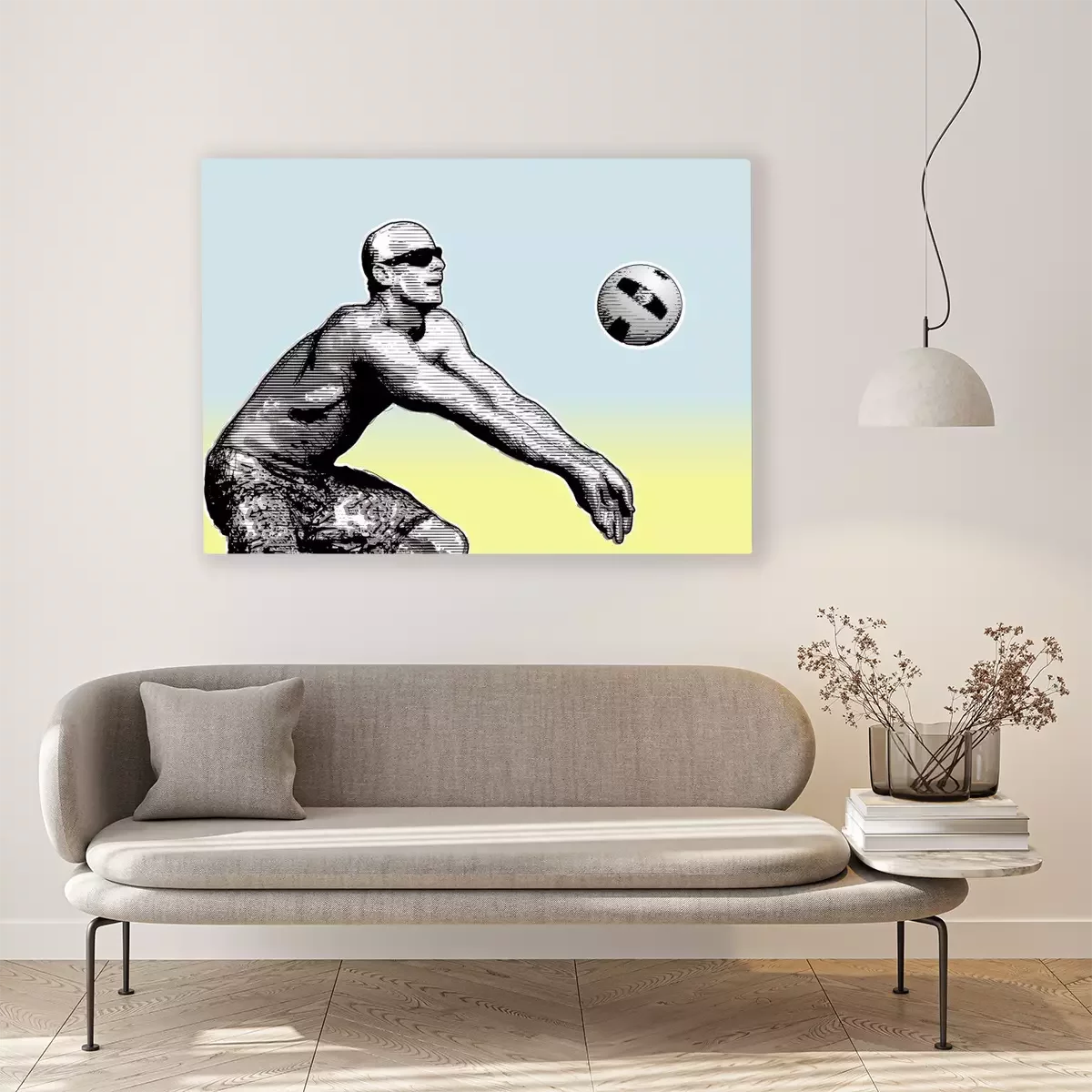 Fröhliche Volleyballspielerin auf abstraktem Hintergrund