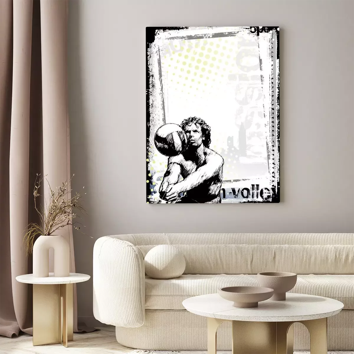 Bild Volleyball Schwarz Weiß mit gelben Punkten