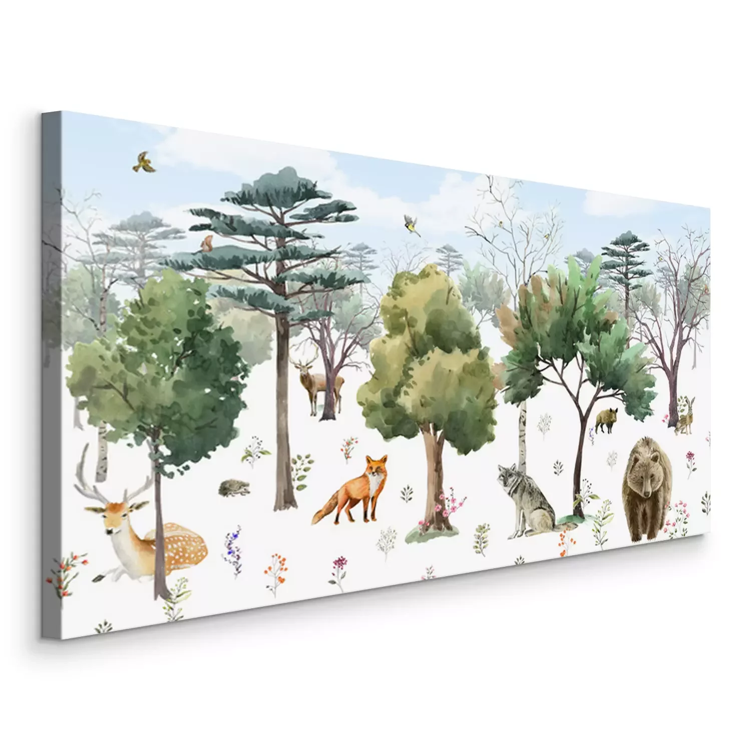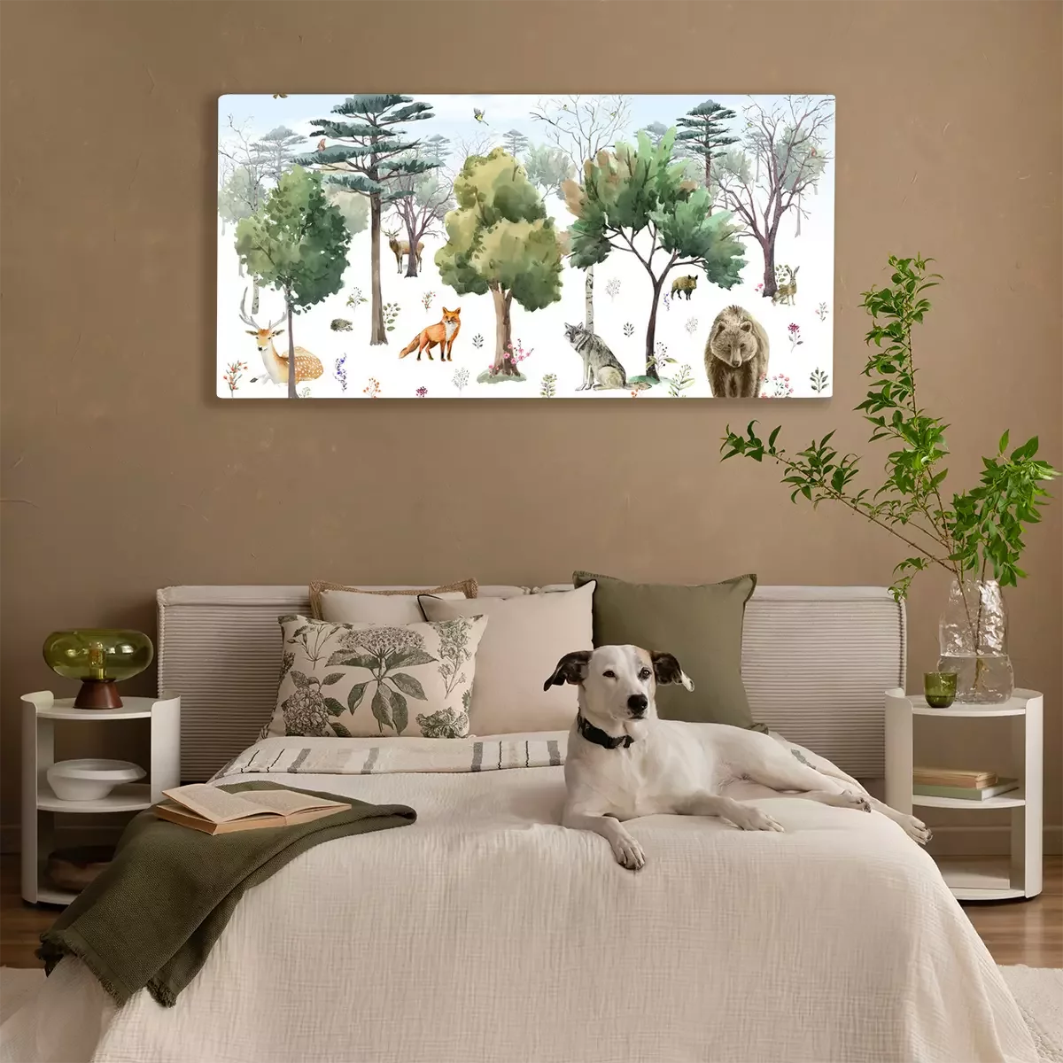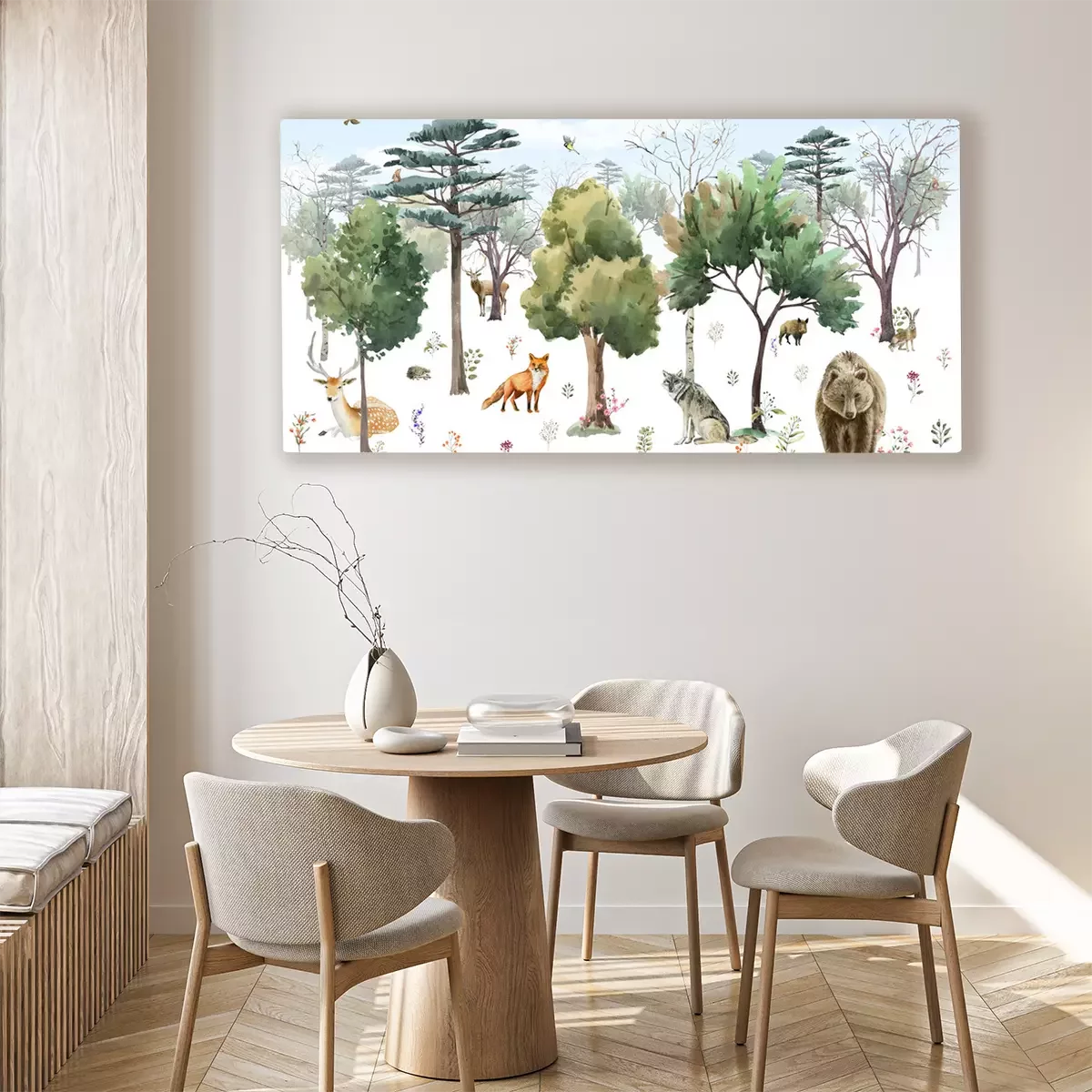 Bild Waldlandschaft mit Tieren im Aquarellstil