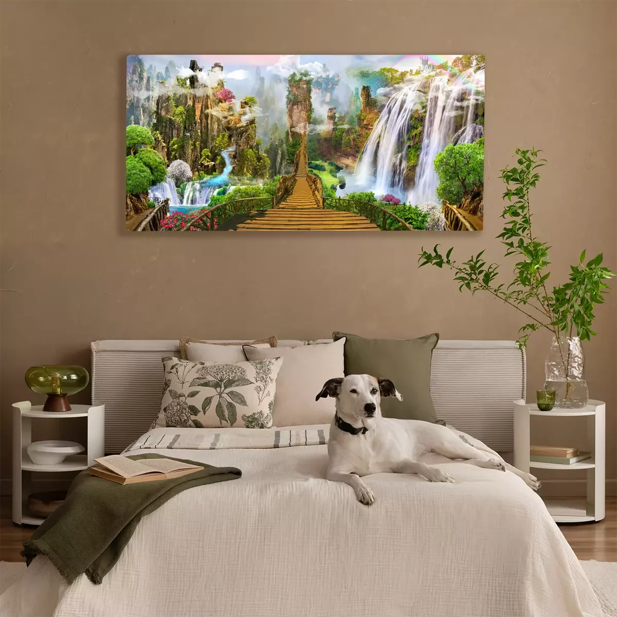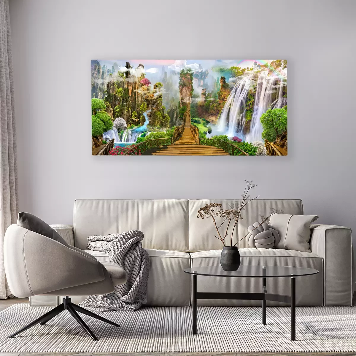 Das Motiv wird auf eine qualitativ hochwertige Leinwand gedruckt, die auf einen Blendrahmen gezogen wird. Da der Aufdruck die Seitenkanten bedeckt, muss das Bild nicht zusätzlich eingerahmt werden. Wir empfehlen außerdem Kompositionen aus mehreren Bildern, die ein harmonisches Ganzes bilden.