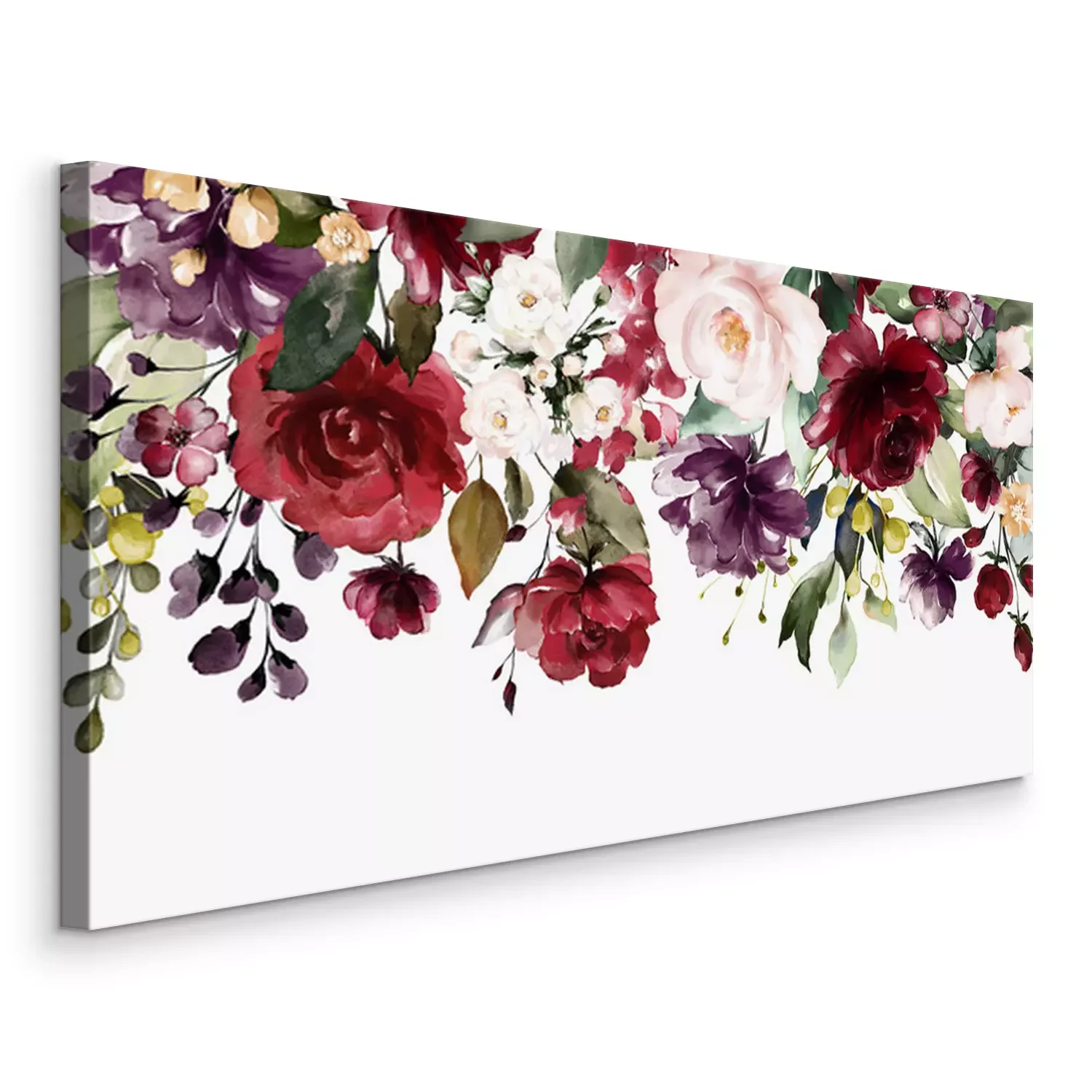 Bild Watercolor flowers. floral illustration, Leaf and buds. Botanic composition for wedding or greeting card. Border, branch of flowers - abstraction roses