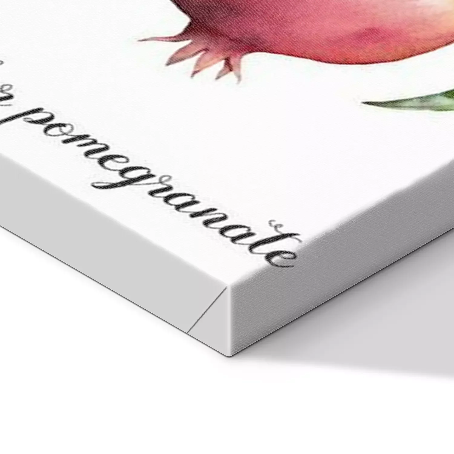 Bild Watercolor pomegranate card. Hand painted garnet fruit on branch with leaves isolated on white background. Floral elegant illustration for design, print.