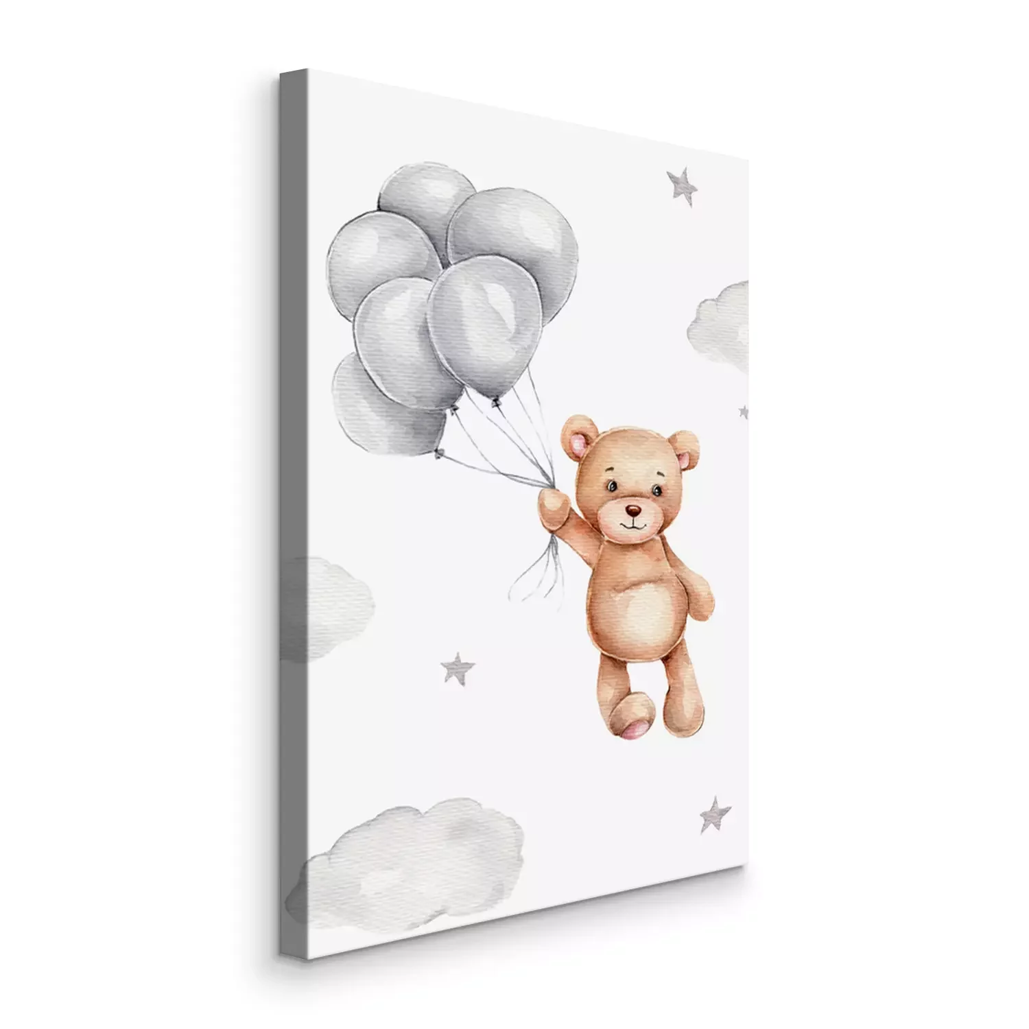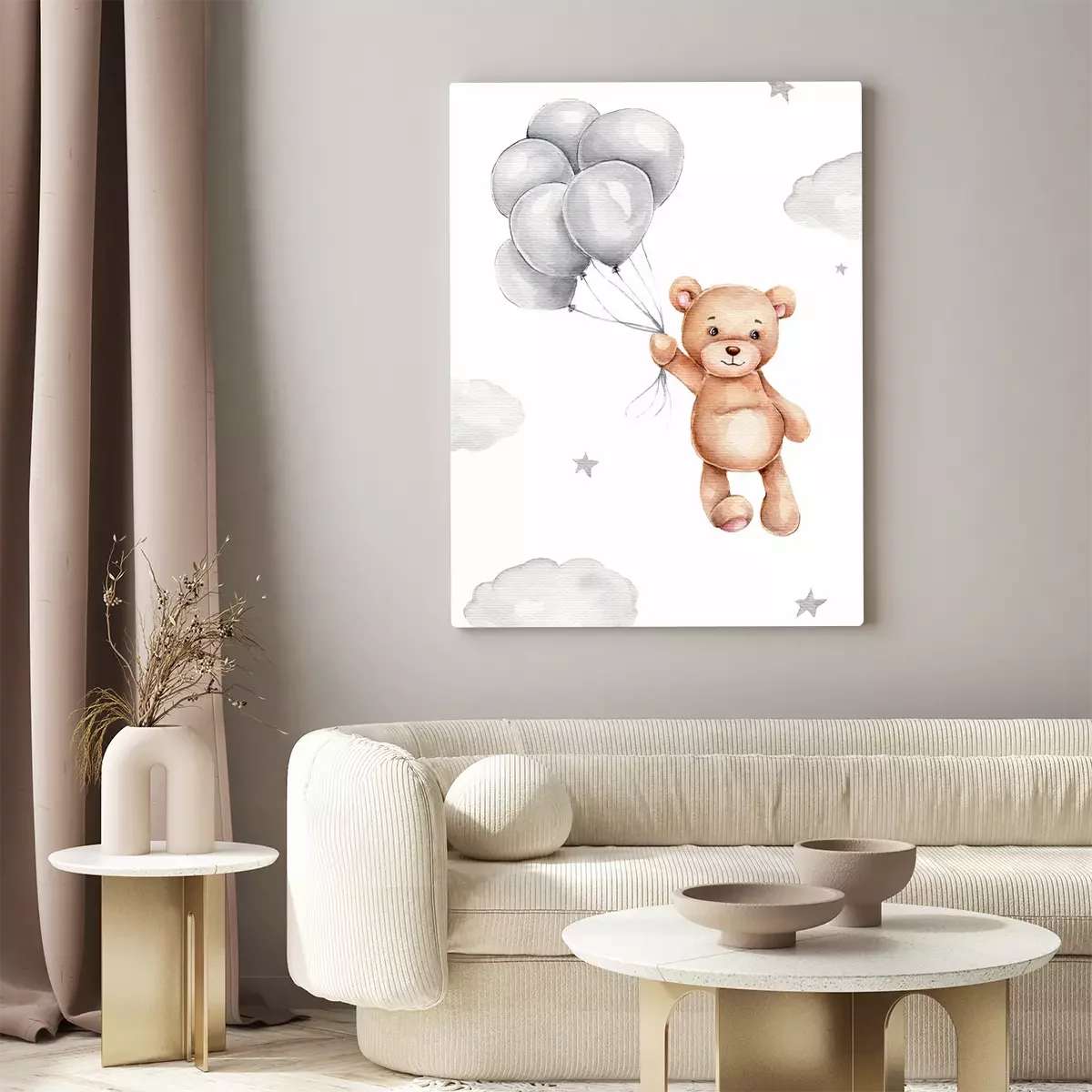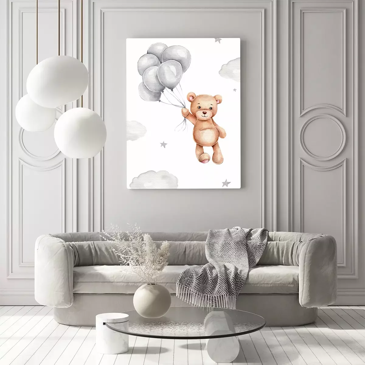 Bild Watercolor teddy bear and grey balloons; hand draw illustration; can be used for kid poster or card; with white isolated background