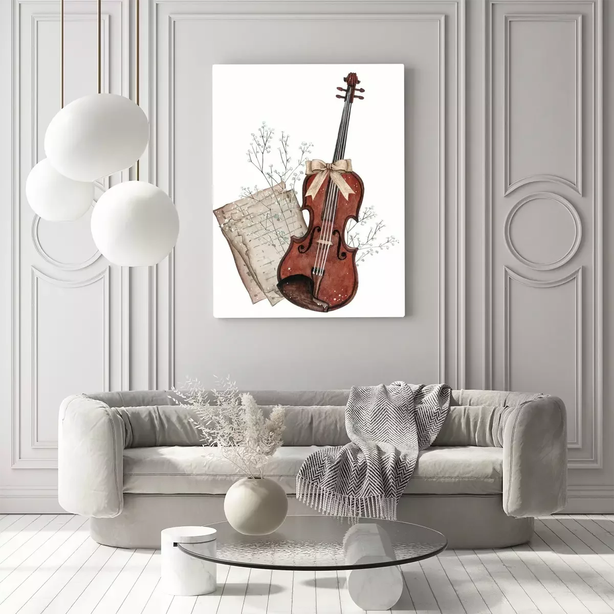 Bild Watercolor violin illustration. Strings musical instruments in classic style
