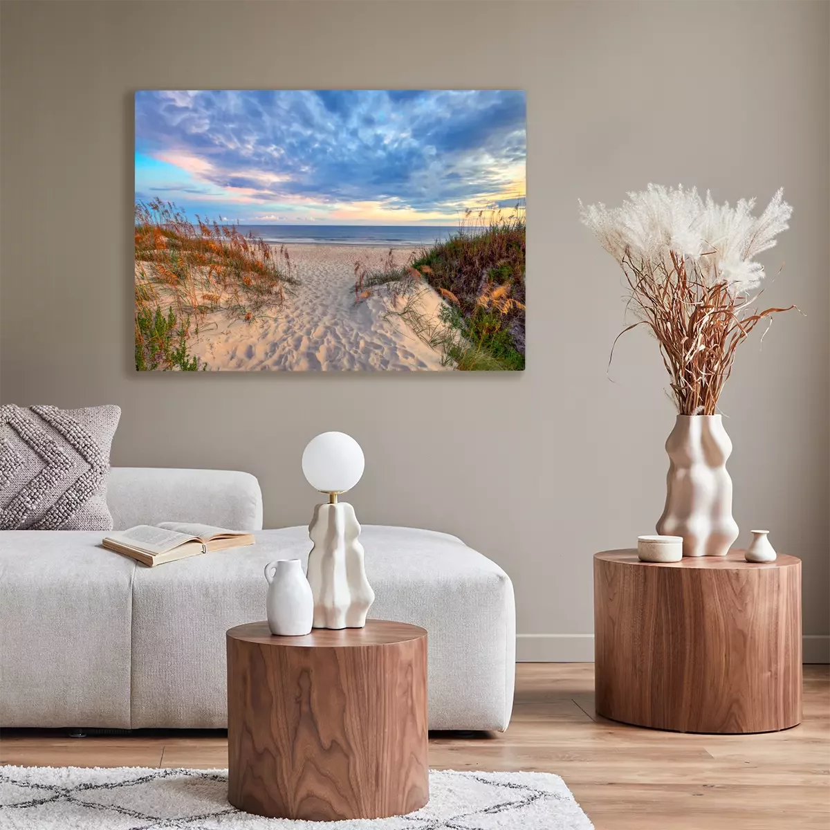 Das Motiv wird auf eine qualitativ hochwertige Leinwand gedruckt, die auf einen Blendrahmen gezogen wird. Da der Aufdruck die Seitenkanten bedeckt, muss das Bild nicht zusätzlich eingerahmt werden. Wir empfehlen außerdem Kompositionen aus mehreren Bildern, die ein harmonisches Ganzes bilden.