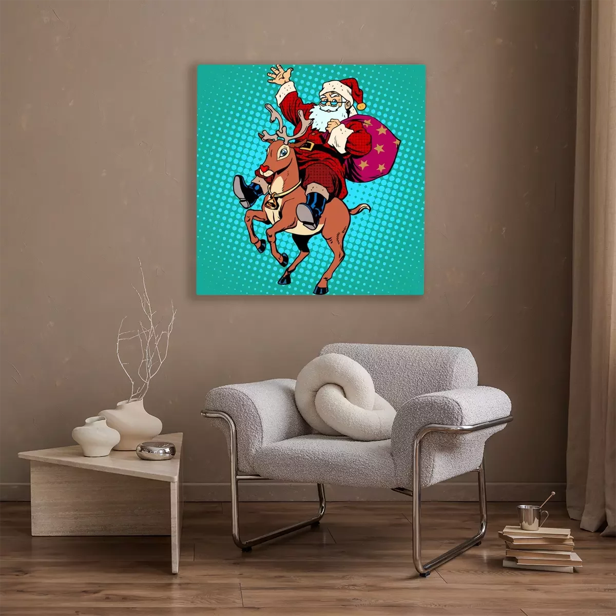 Pop-Art-Weihnachtsmann auf dem Motorrad