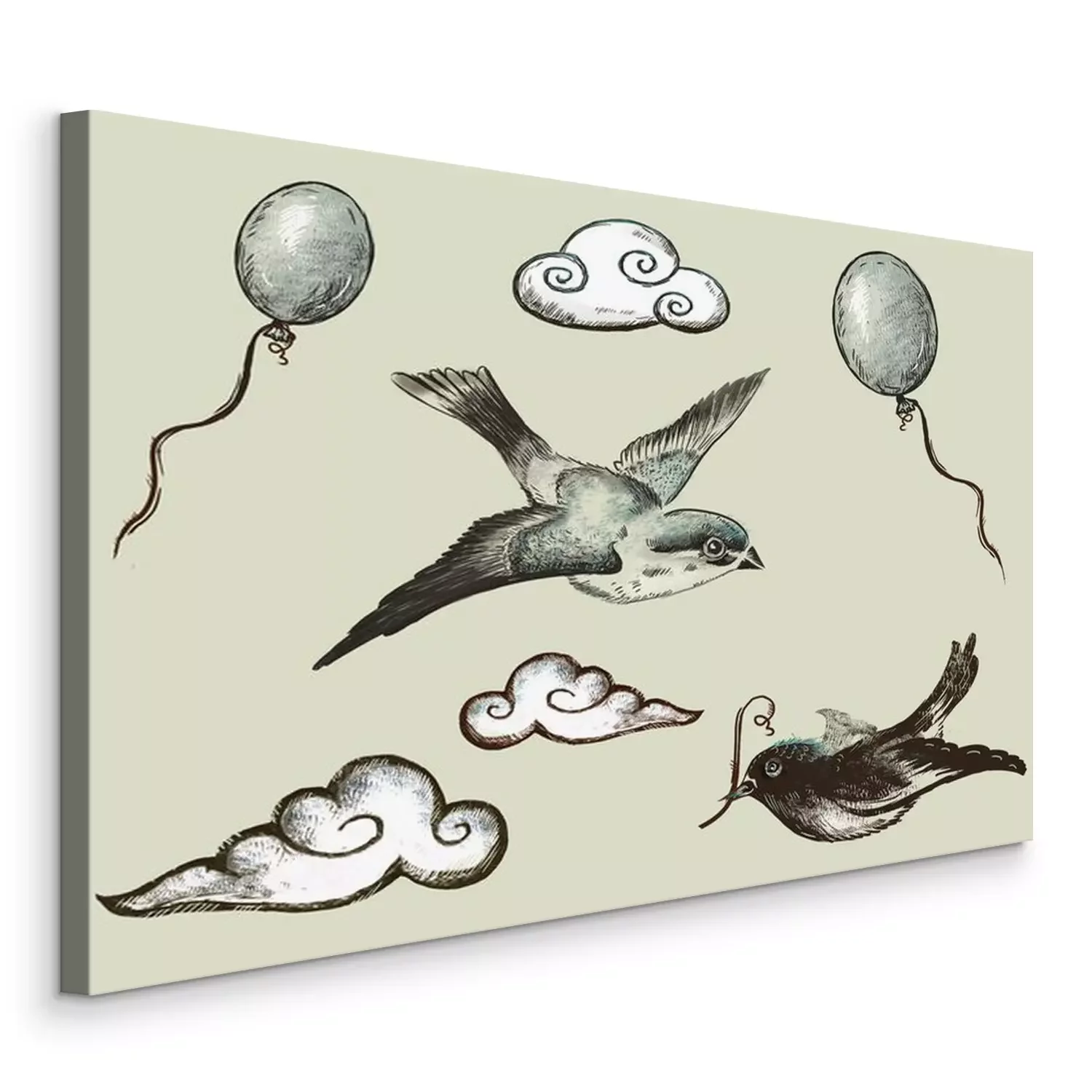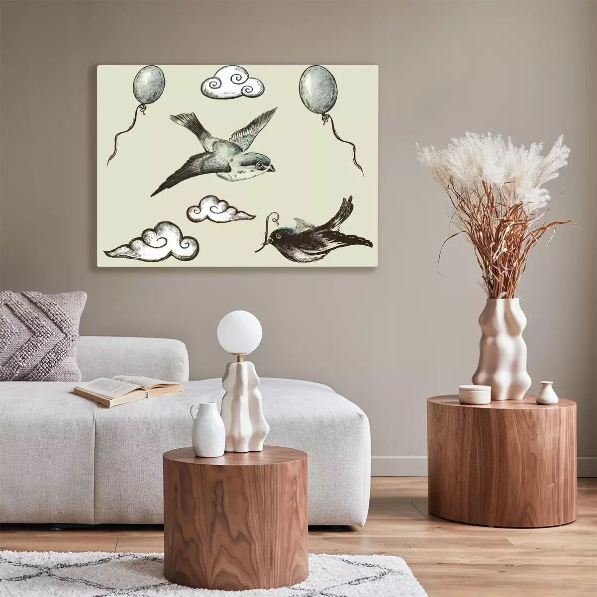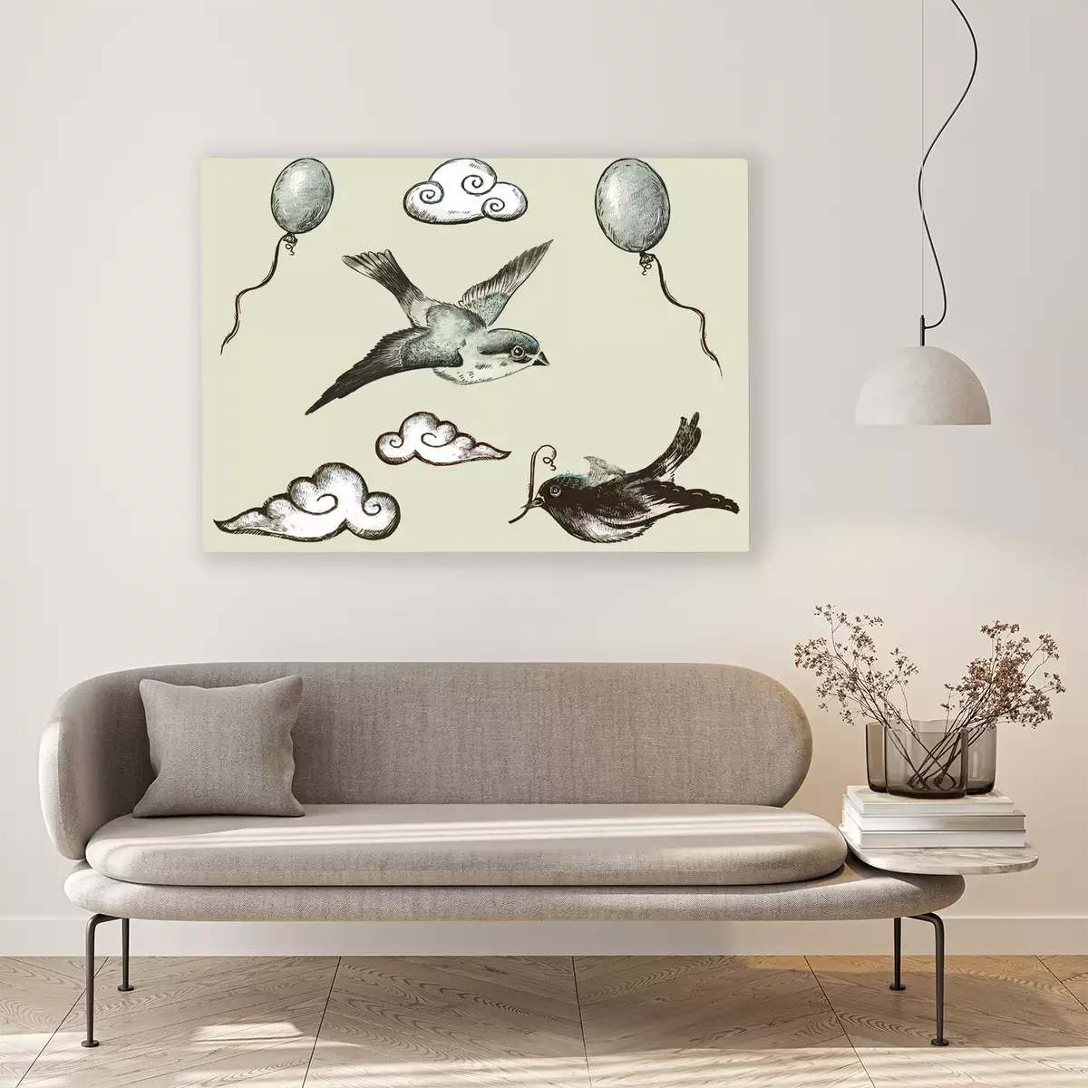 Bild Weinlese. Sammlung Dekorelemente. Birds. Ball.Cloud.
