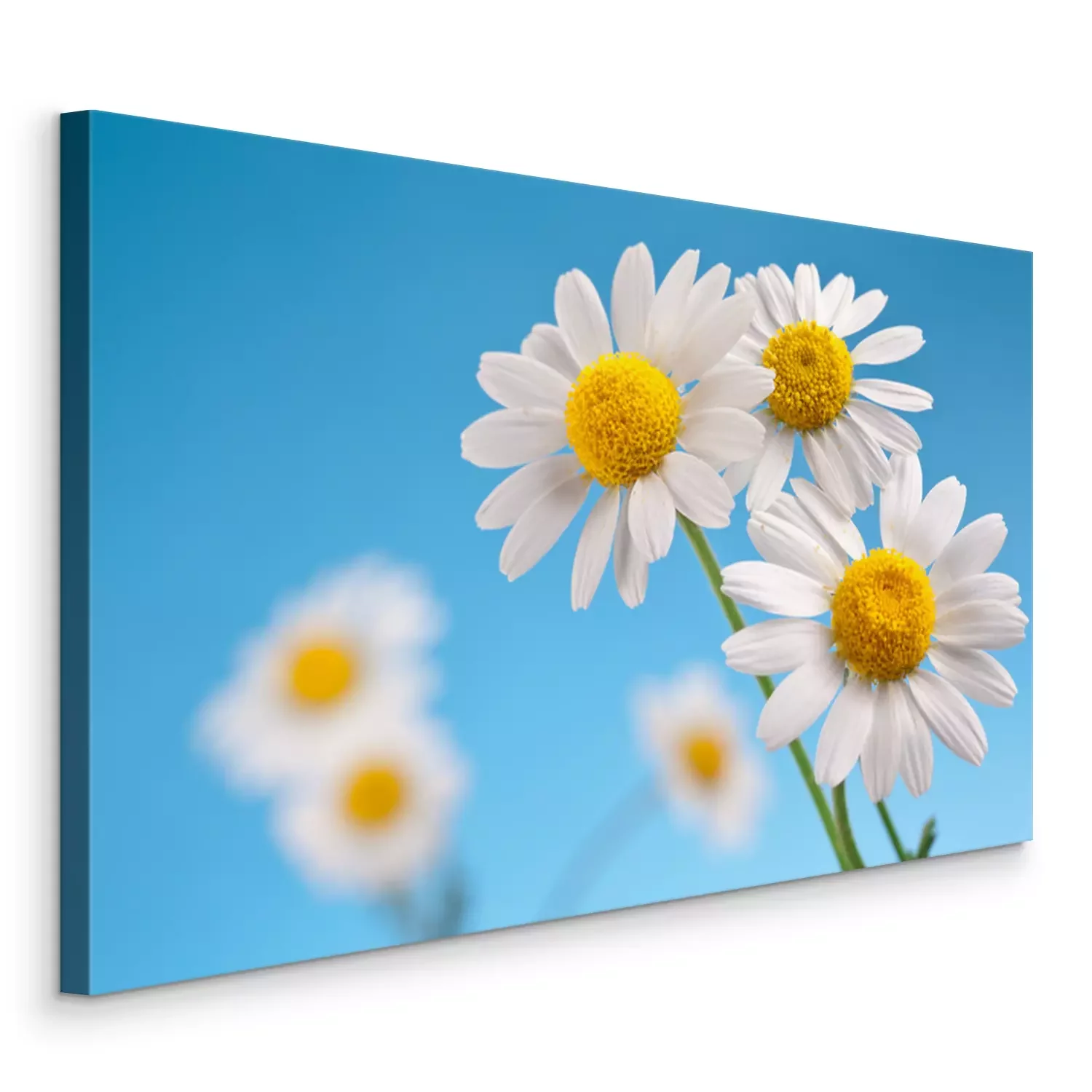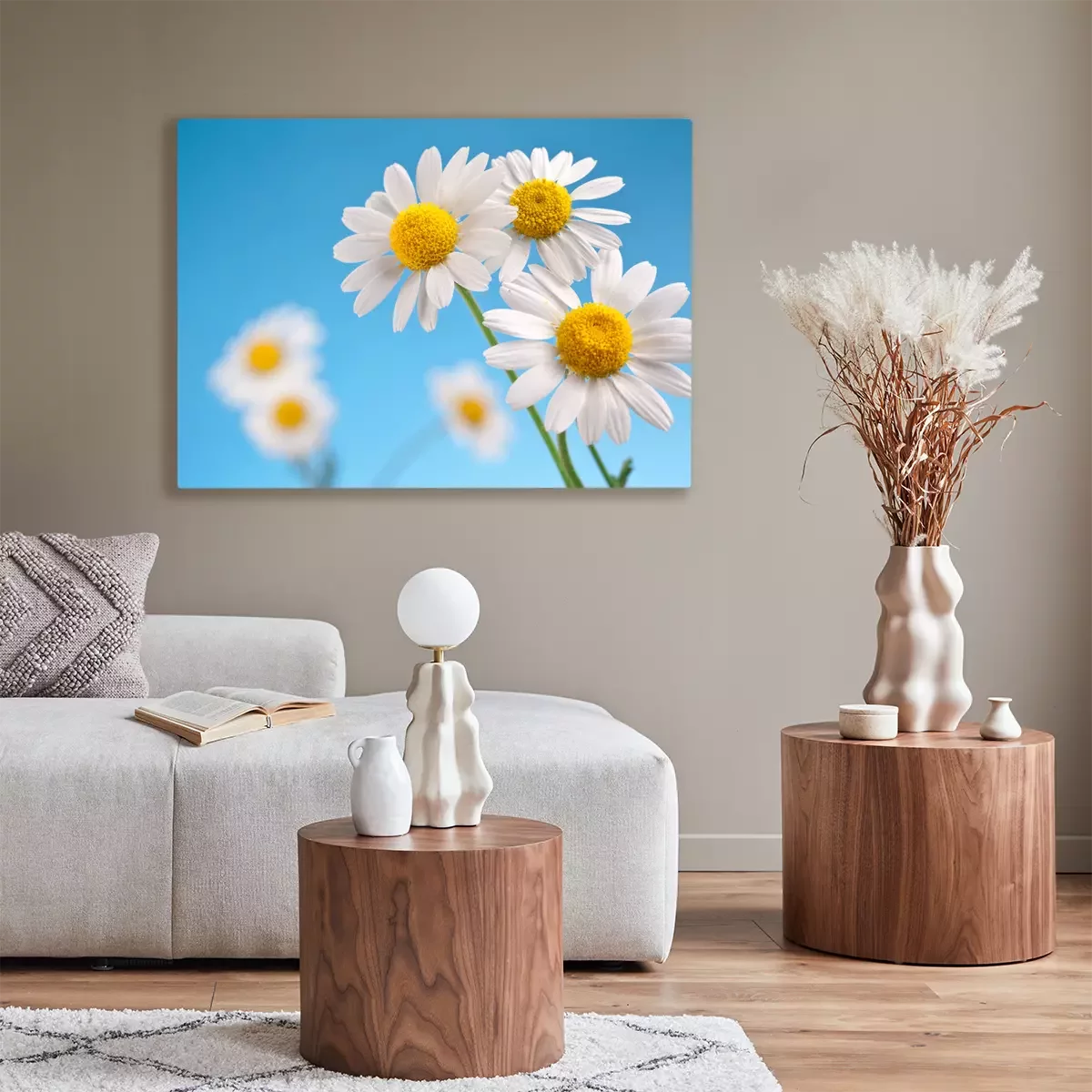 Bild: Weiße Gänseblümchen am blauen Himmel