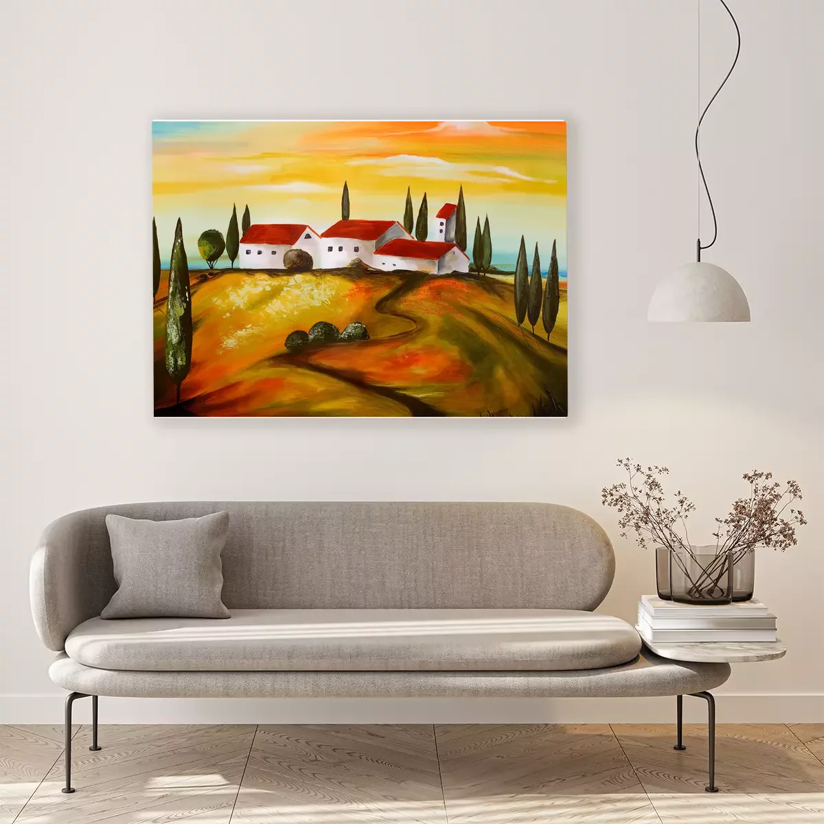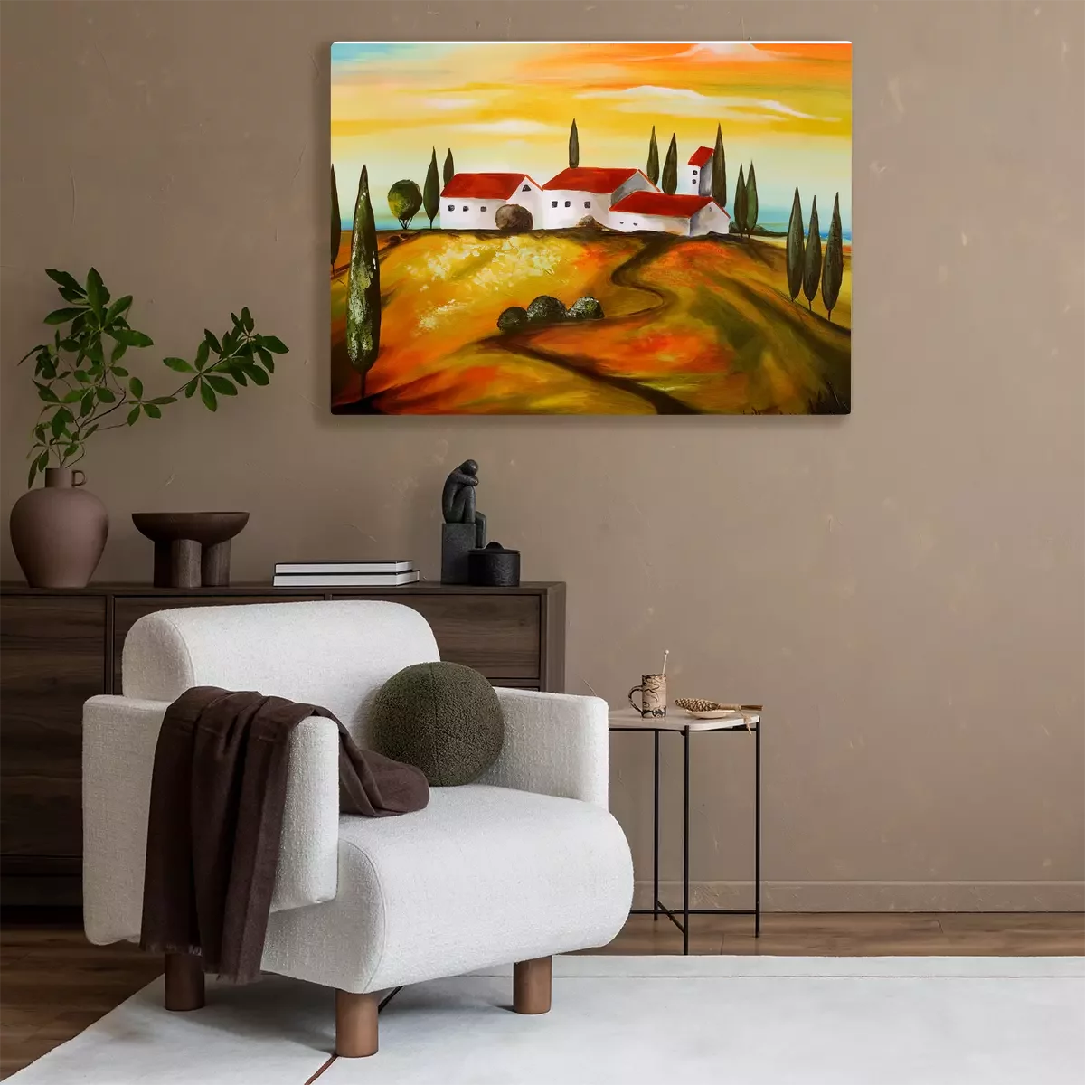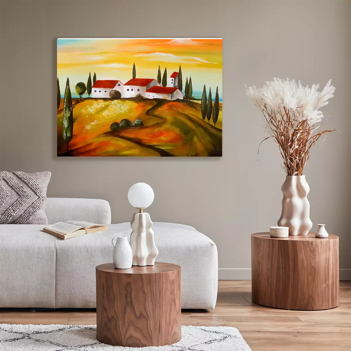 Weiße häuser auf einem hügel, umgeben von zypressen