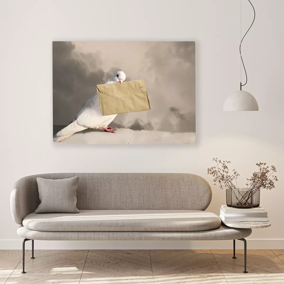 Bild Weiße Taube mit einem Buchstaben
