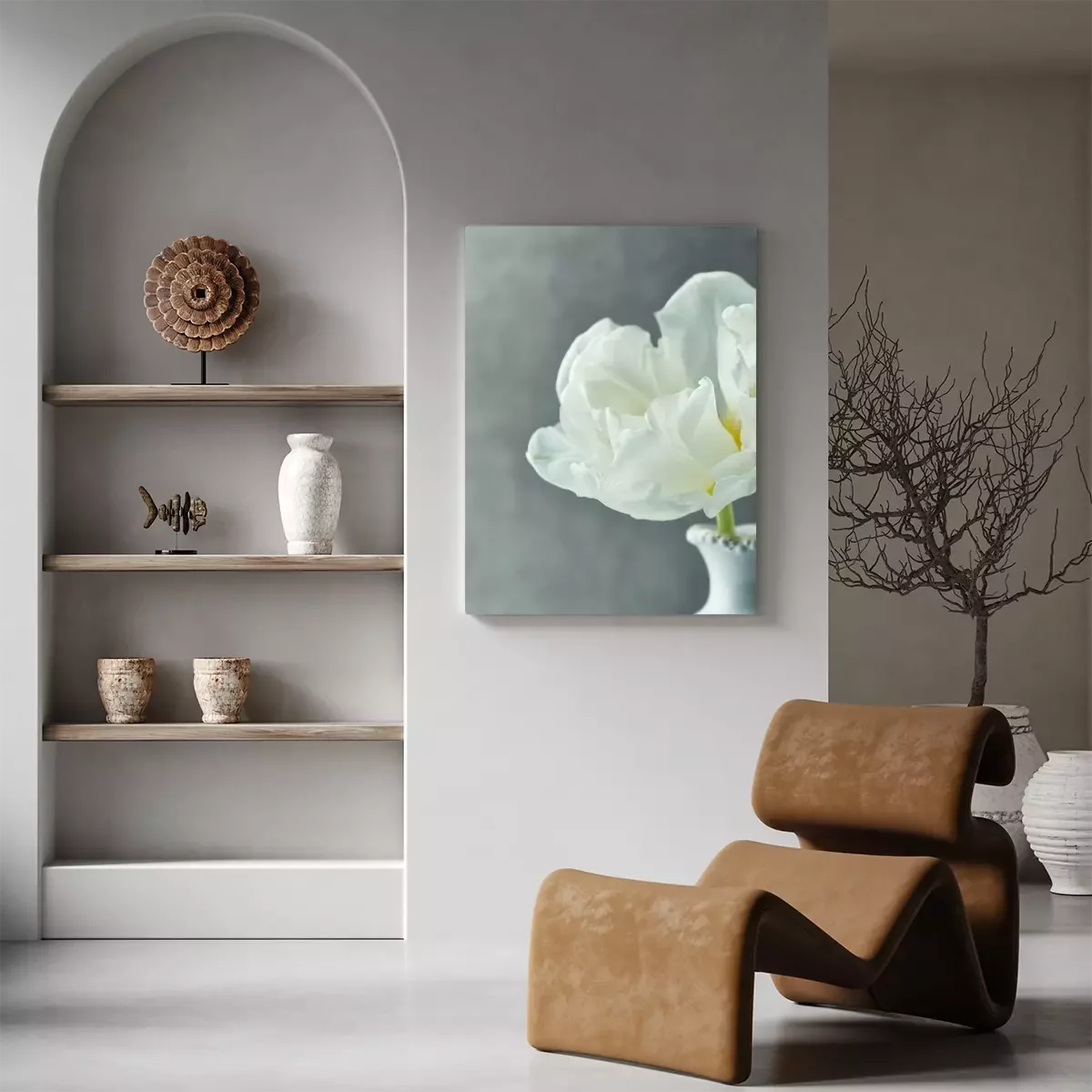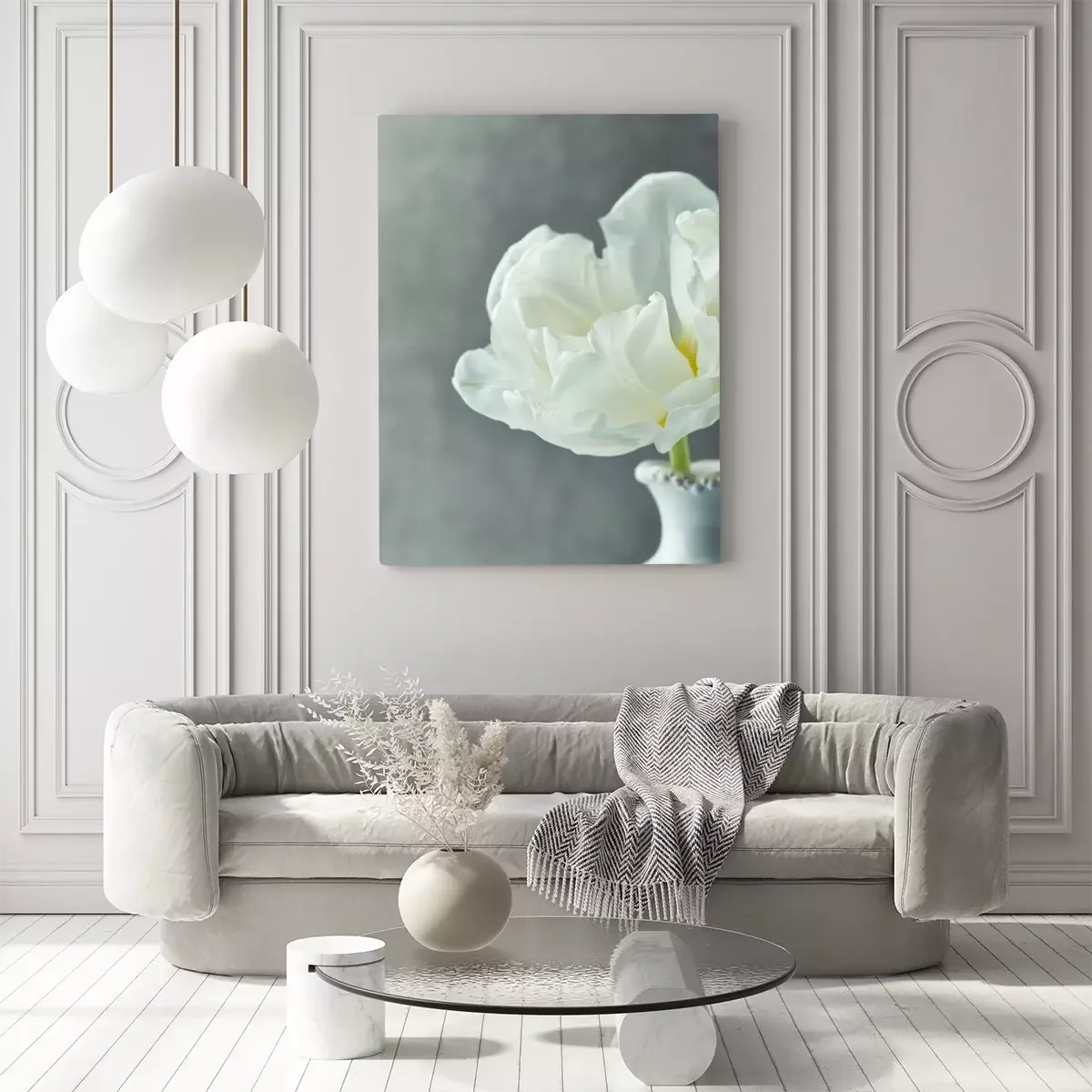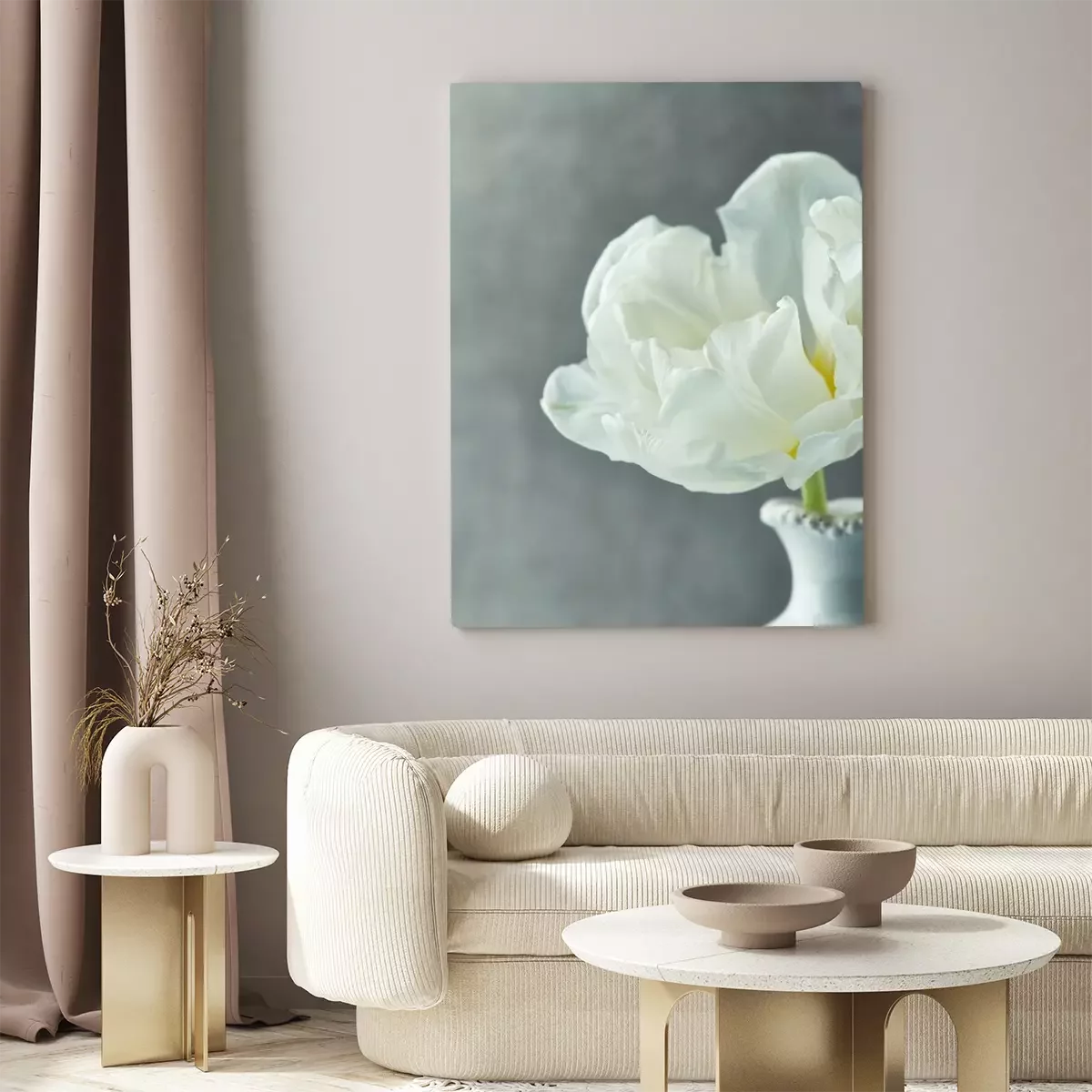 Bild: Weiße Tulpe auf grauem Hintergrund