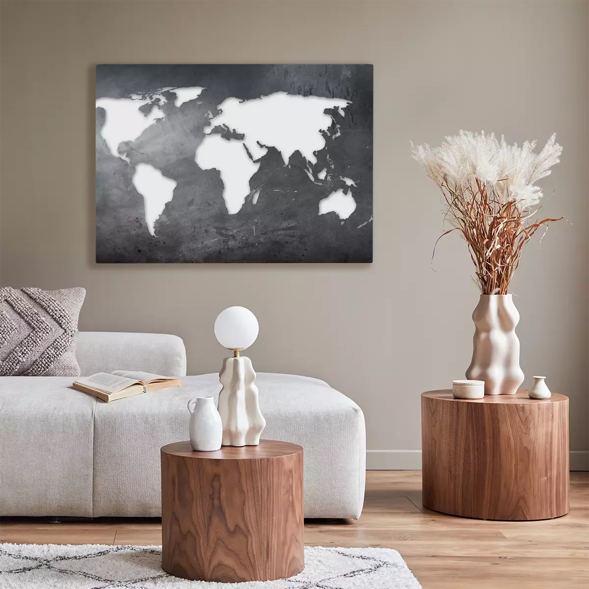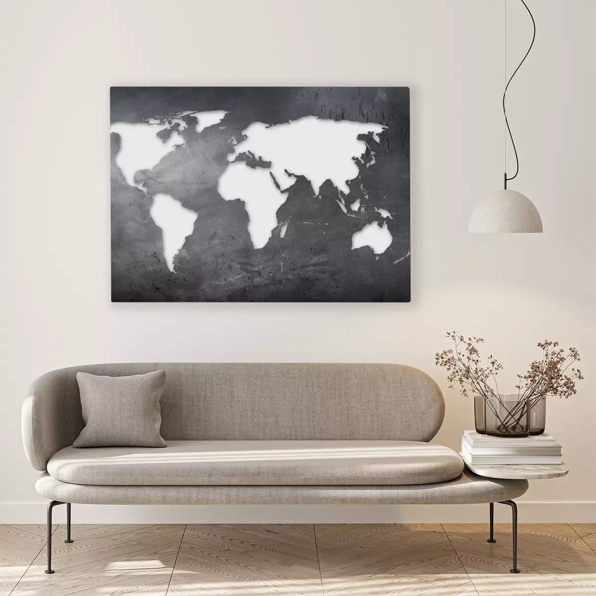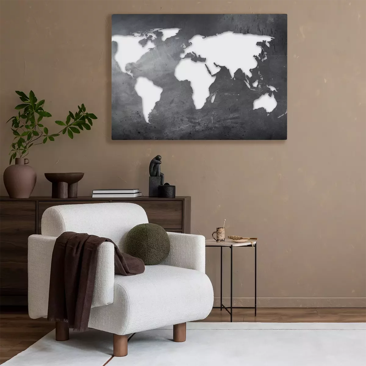 Bild: Weiße Weltkarte auf Beton