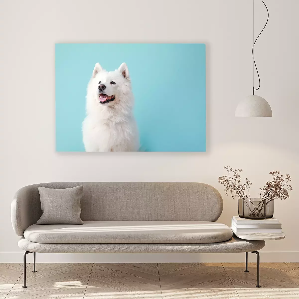 Bild Weißer Hund auf blauem Hintergrund