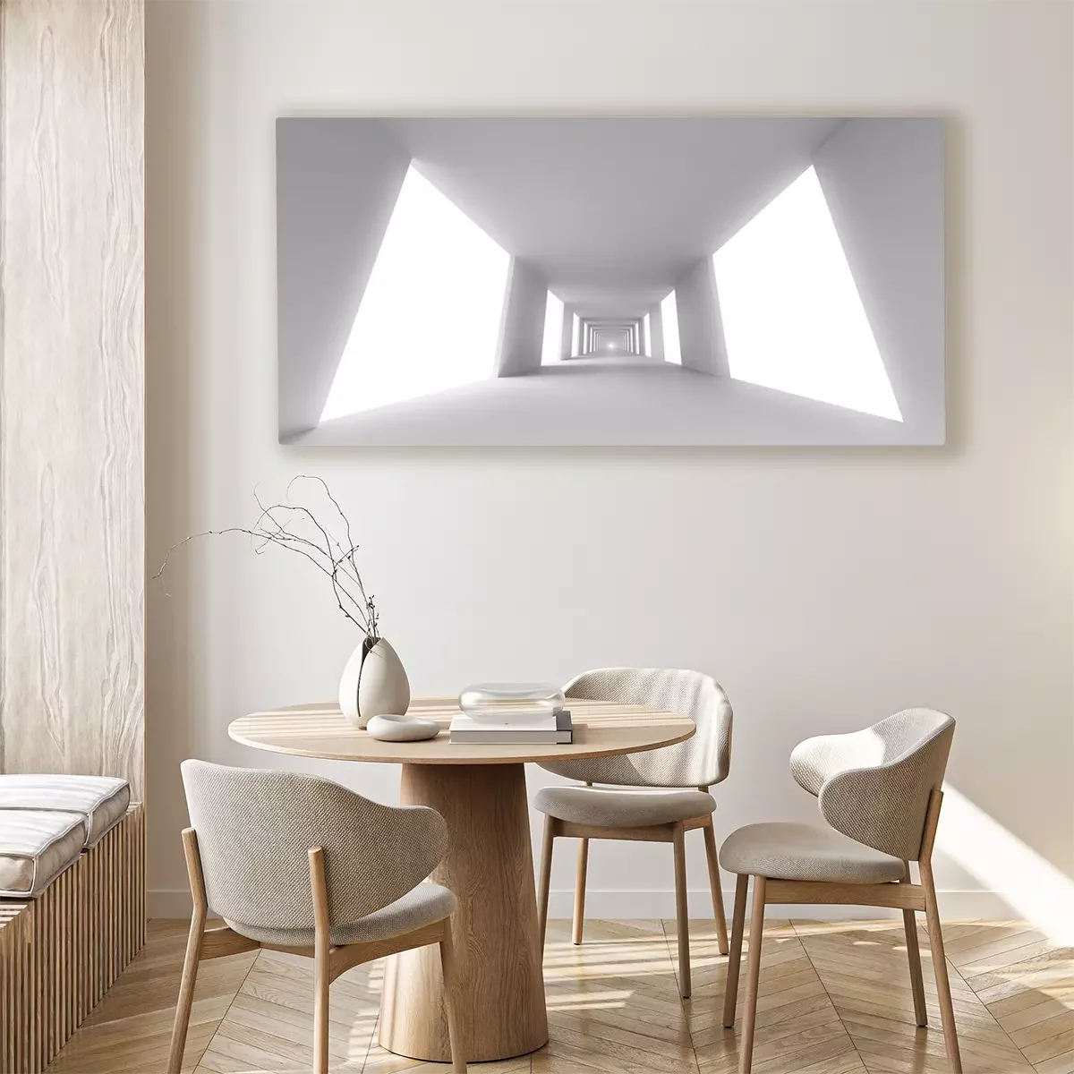 Weißer 3D-Tunnel im abstrakten Stil
