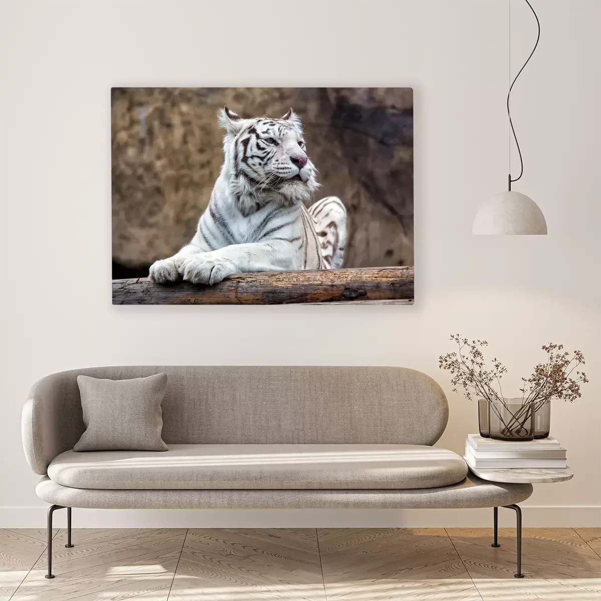 Bild Weißer tiger mit felsen im hintergrund