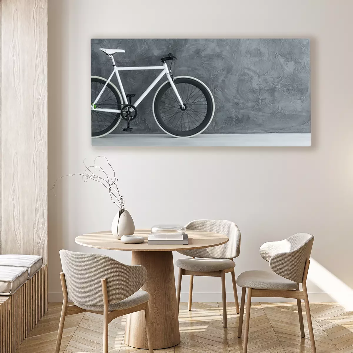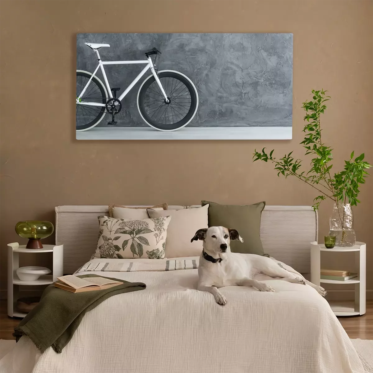 Bild Weißes Fahrrad vor dem Hintergrund der Betonwand
