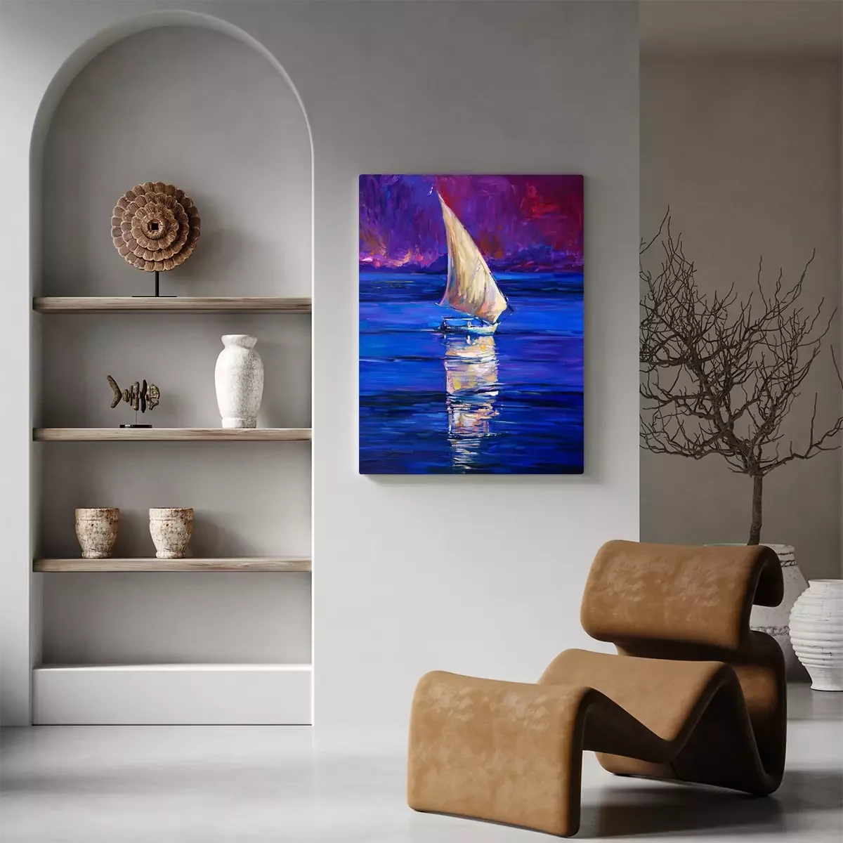 Bild: Weißes Segelboot im dunklen Wasser des Meeres