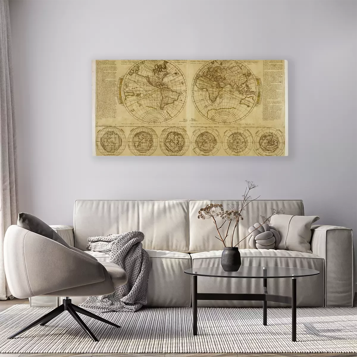 Weltkarte mit zwei Halbkugeln