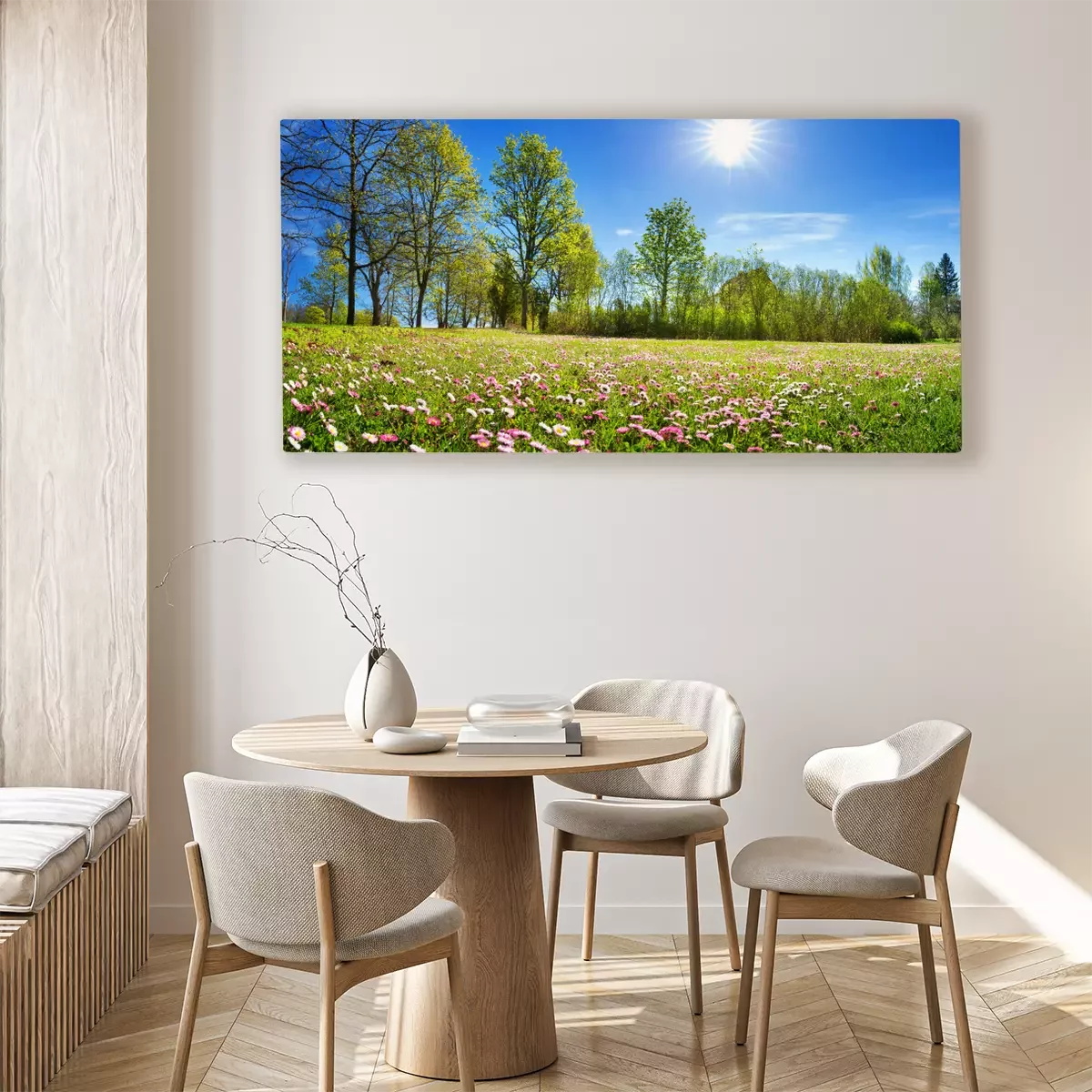 Das Motiv wird auf eine qualitativ hochwertige Leinwand gedruckt, die auf einen Blendrahmen gezogen wird. Da der Aufdruck die Seitenkanten bedeckt, muss das Bild nicht zusätzlich eingerahmt werden. Wir empfehlen außerdem Kompositionen aus mehreren Bildern, die ein harmonisches Ganzes bilden.