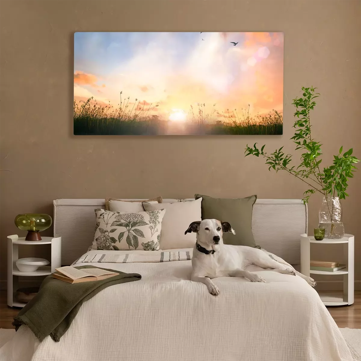 Das Motiv wird auf eine qualitativ hochwertige Leinwand gedruckt, die auf einen Blendrahmen gezogen wird. Da der Aufdruck die Seitenkanten bedeckt, muss das Bild nicht zusätzlich eingerahmt werden. Wir empfehlen außerdem Kompositionen aus mehreren Bildern, die ein harmonisches Ganzes bilden.