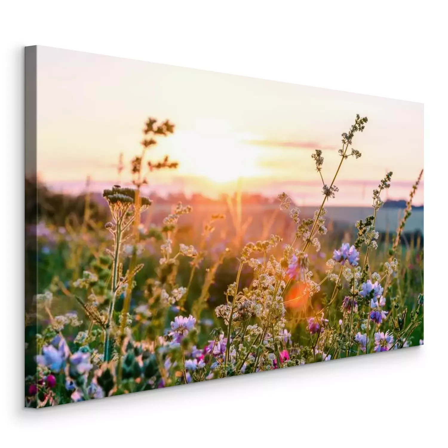 Bild Wiese mit Blumen bei Sonnenuntergang