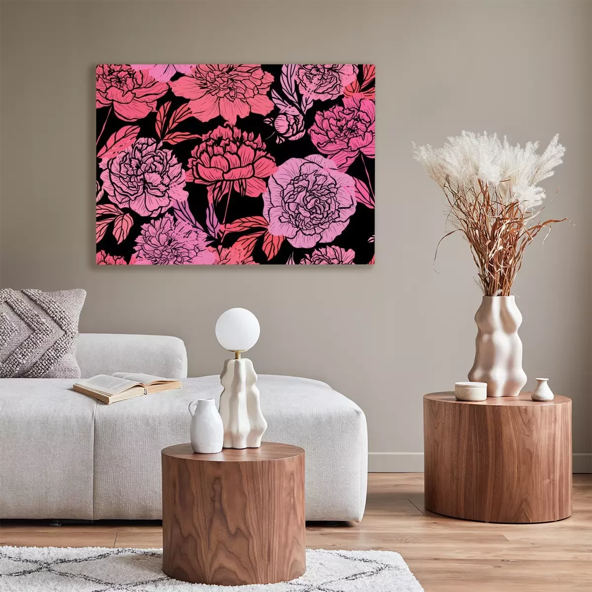 Bild Wilde rosa Blumen auf schwarzem Hintergrund