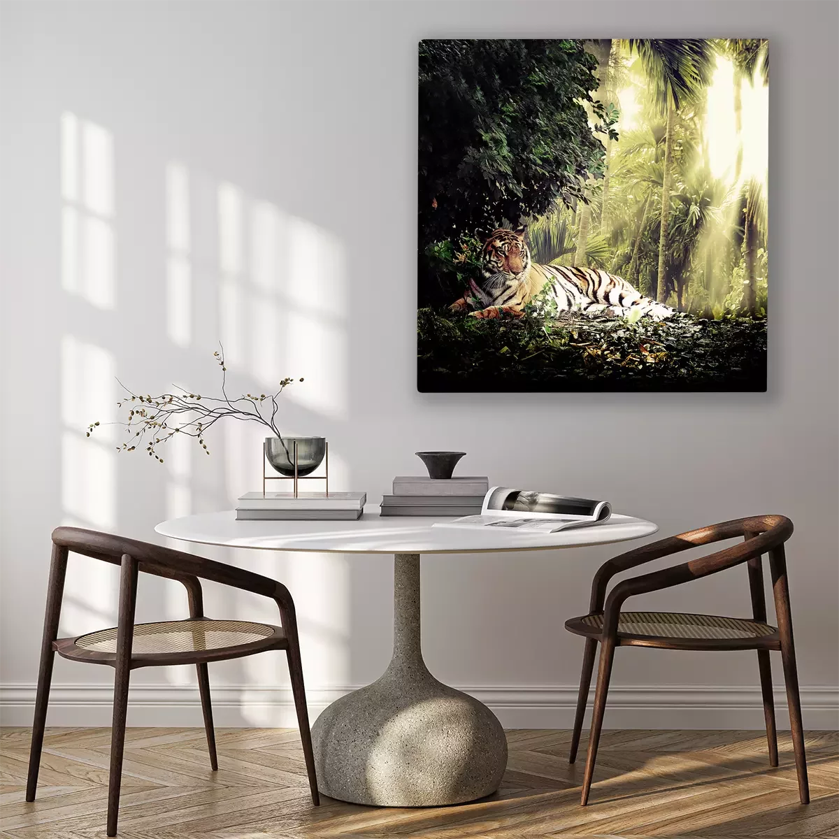 Das Motiv wird auf eine qualitativ hochwertige Leinwand gedruckt, die auf einen Blendrahmen gezogen wird. Da der Aufdruck die Seitenkanten bedeckt, muss das Bild nicht zusätzlich eingerahmt werden. Wir empfehlen außerdem Kompositionen aus mehreren Bildern, die ein harmonisches Ganzes bilden.
