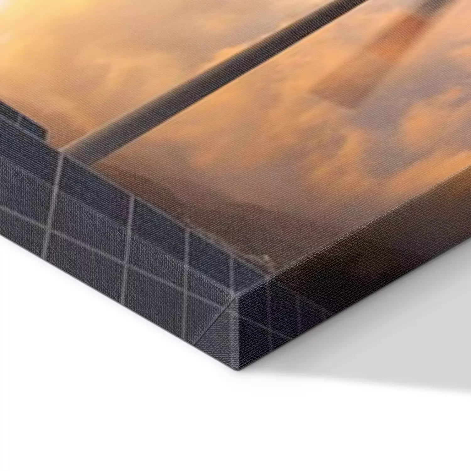 Das Motiv wird auf eine qualitativ hochwertige Leinwand gedruckt, die auf einen Blendrahmen gezogen wird. Da der Aufdruck die Seitenkanten bedeckt, muss das Bild nicht zusätzlich eingerahmt werden. Wir empfehlen außerdem Kompositionen aus mehreren Bildern, die ein harmonisches Ganzes bilden.