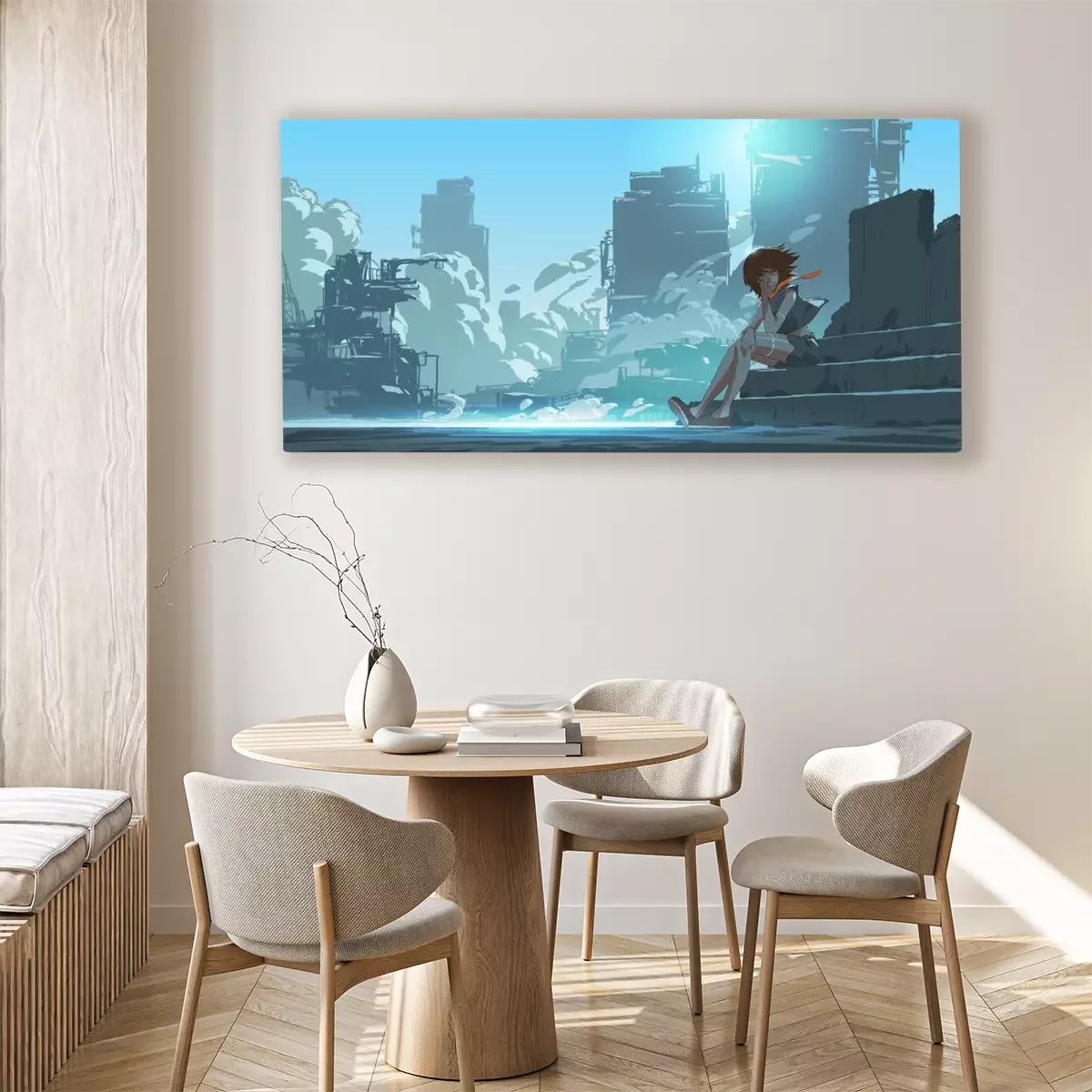 Das Motiv wird auf eine qualitativ hochwertige Leinwand gedruckt, die auf einen Blendrahmen gezogen wird. Da der Aufdruck die Seitenkanten bedeckt, muss das Bild nicht zusätzlich eingerahmt werden. Wir empfehlen außerdem Kompositionen aus mehreren Bildern, die ein harmonisches Ganzes bilden.