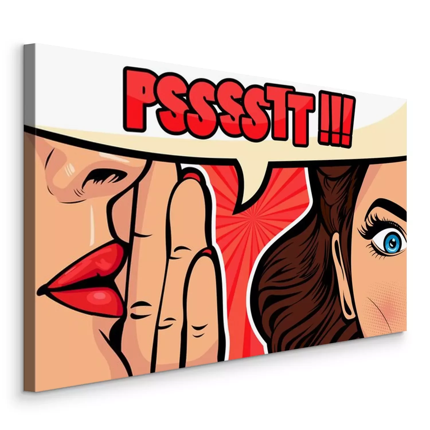 Bild Woman whispering gossip or secret to her friend. Colorful vector illustration in pop art retro comic style with speech bubble.