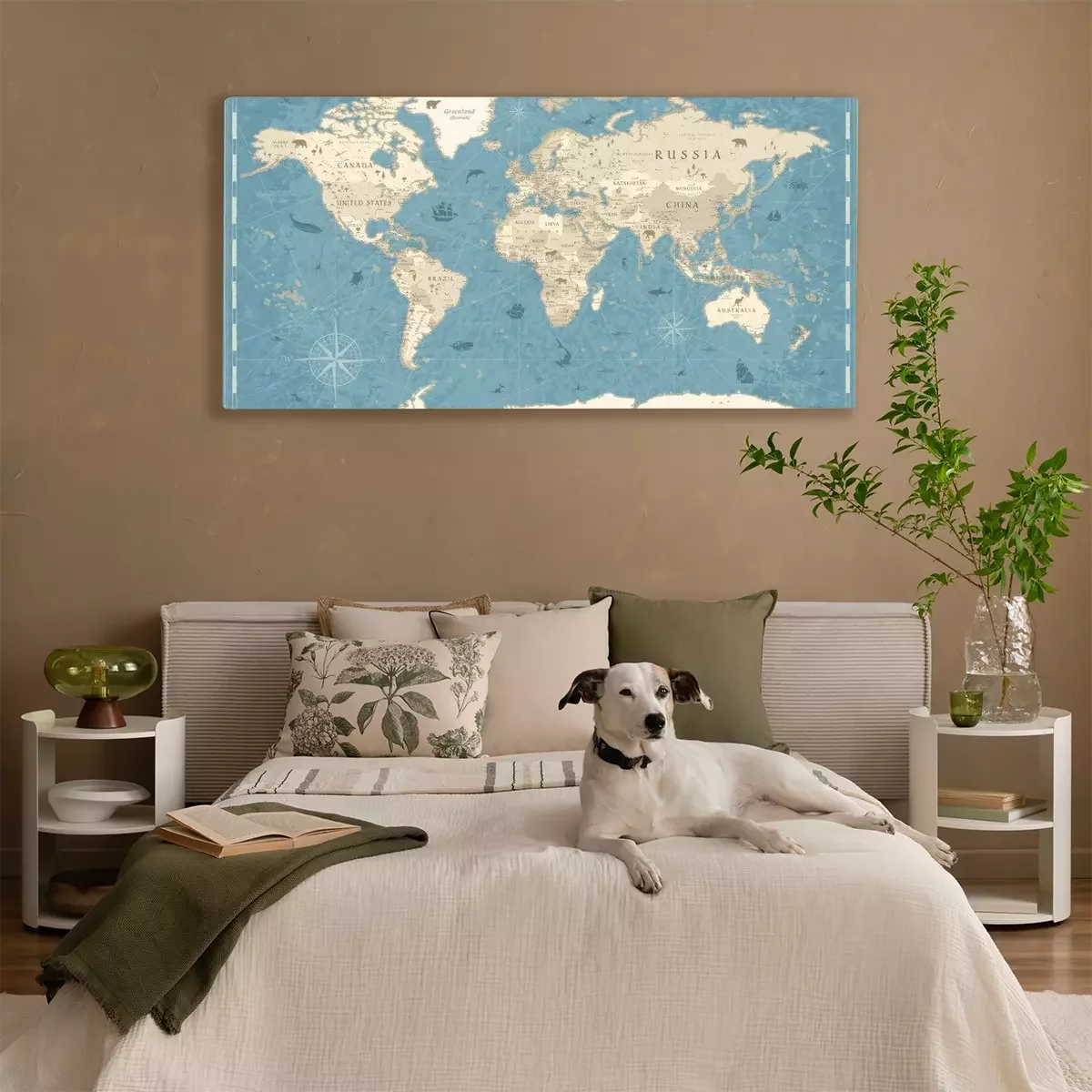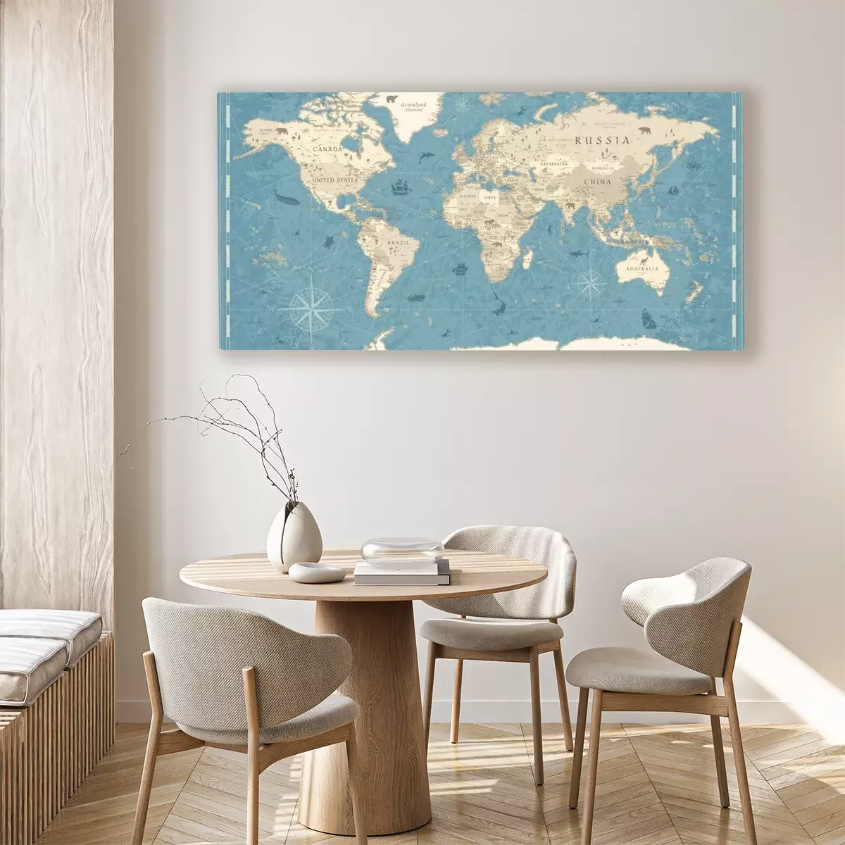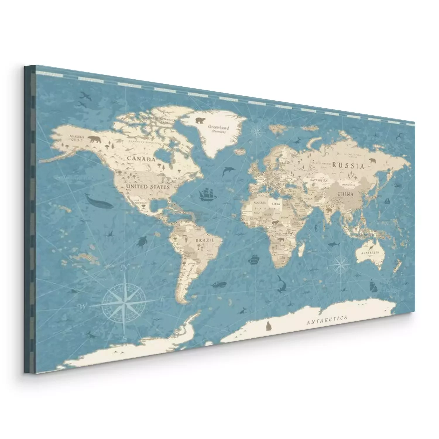 Bild World Map Vintage Old-Style - vector - blue and beige