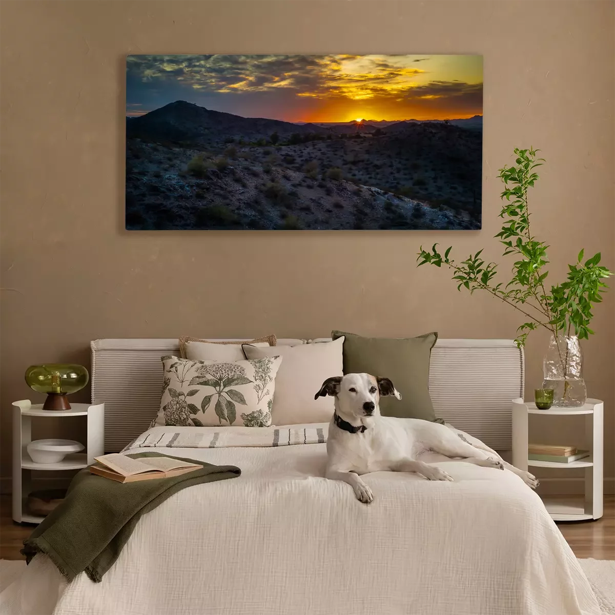 Das Motiv wird auf eine qualitativ hochwertige Leinwand gedruckt, die auf einen Blendrahmen gezogen wird. Da der Aufdruck die Seitenkanten bedeckt, muss das Bild nicht zusätzlich eingerahmt werden. Wir empfehlen außerdem Kompositionen aus mehreren Bildern, die ein harmonisches Ganzes bilden.