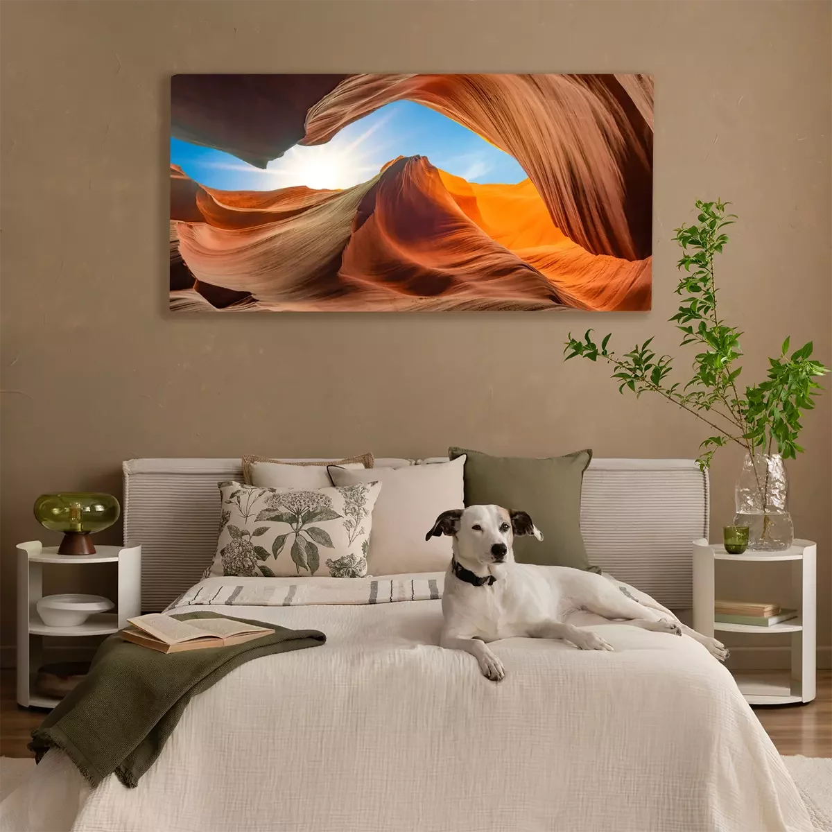 Das Motiv wird auf eine qualitativ hochwertige Leinwand gedruckt, die auf einen Blendrahmen gezogen wird. Da der Aufdruck die Seitenkanten bedeckt, muss das Bild nicht zusätzlich eingerahmt werden. Wir empfehlen außerdem Kompositionen aus mehreren Bildern, die ein harmonisches Ganzes bilden.