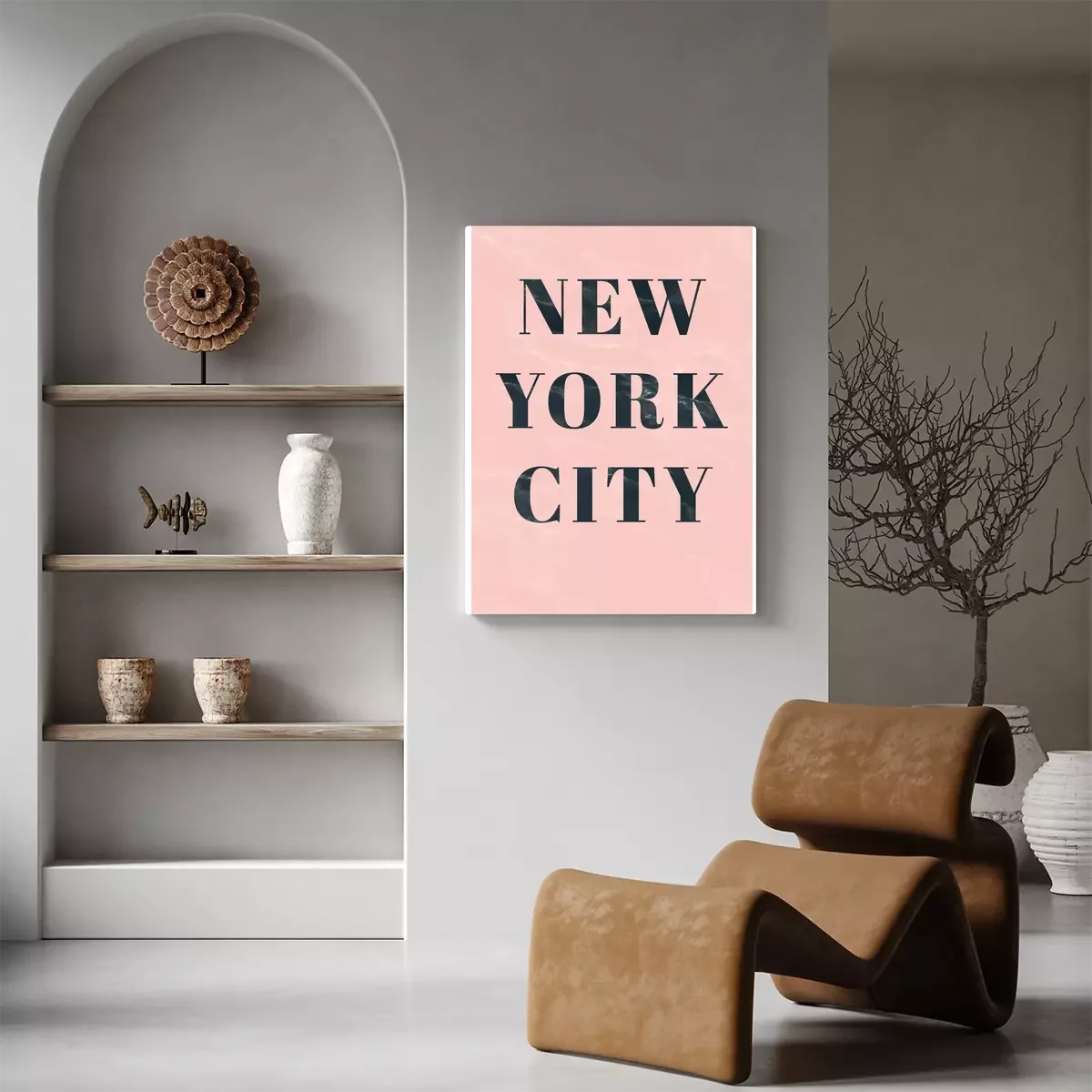 Die inschrift „new york city“ auf puderrosa hintergrund