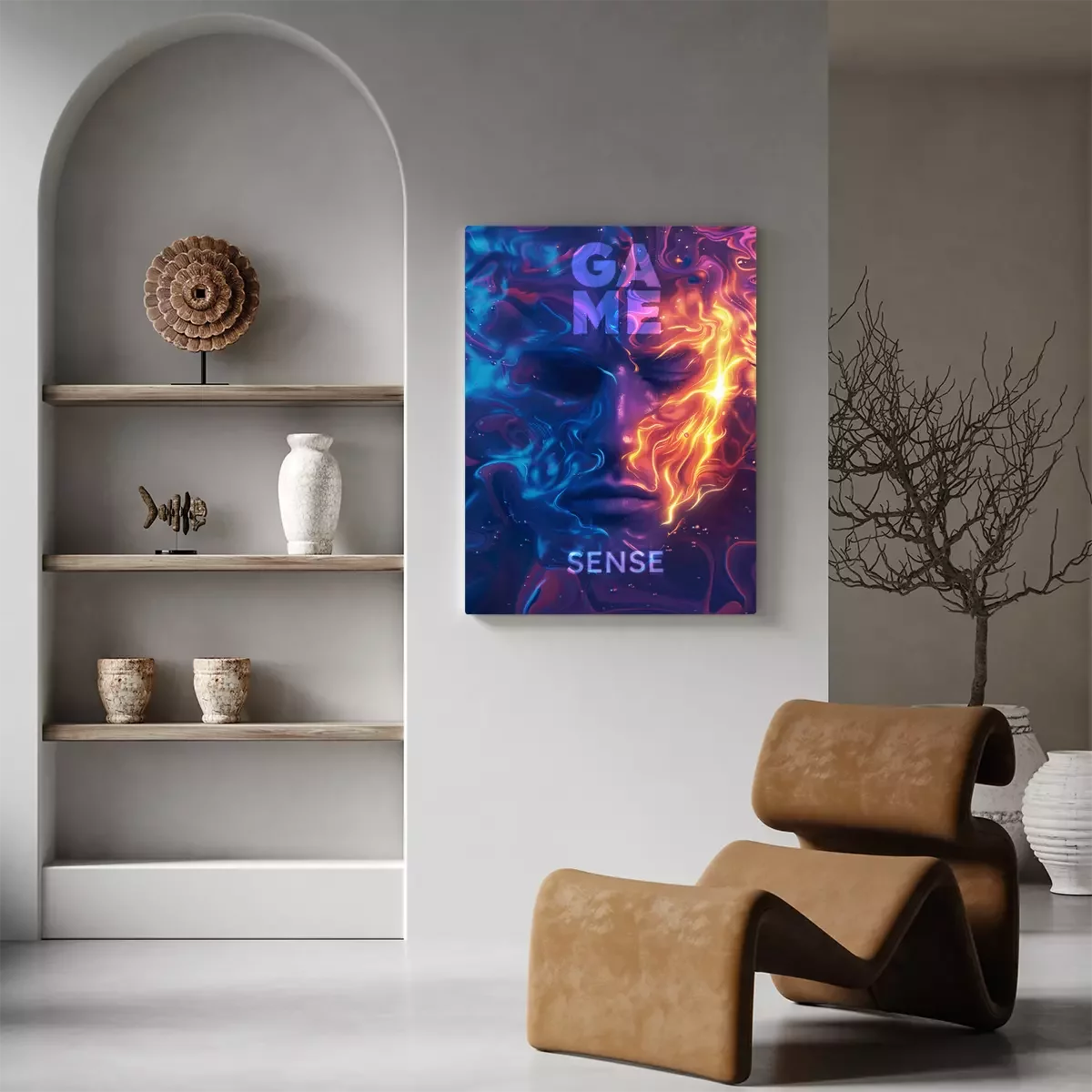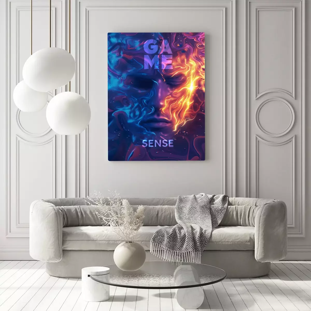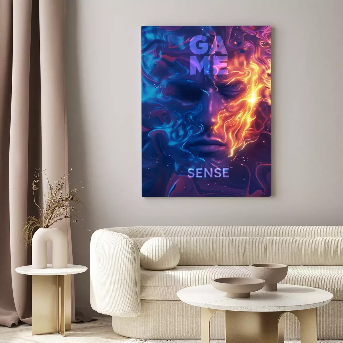 Ein gesicht in neonfarben mit der aufschrift „game sense“