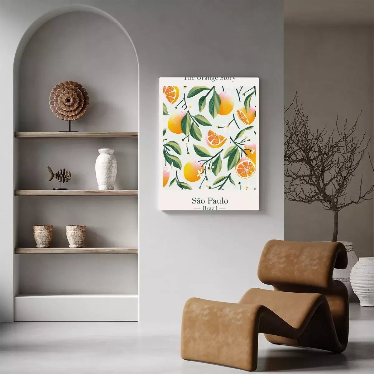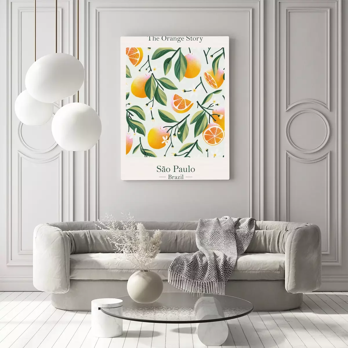 Orangefarbenes muster mit dem schriftzug „the orange story“