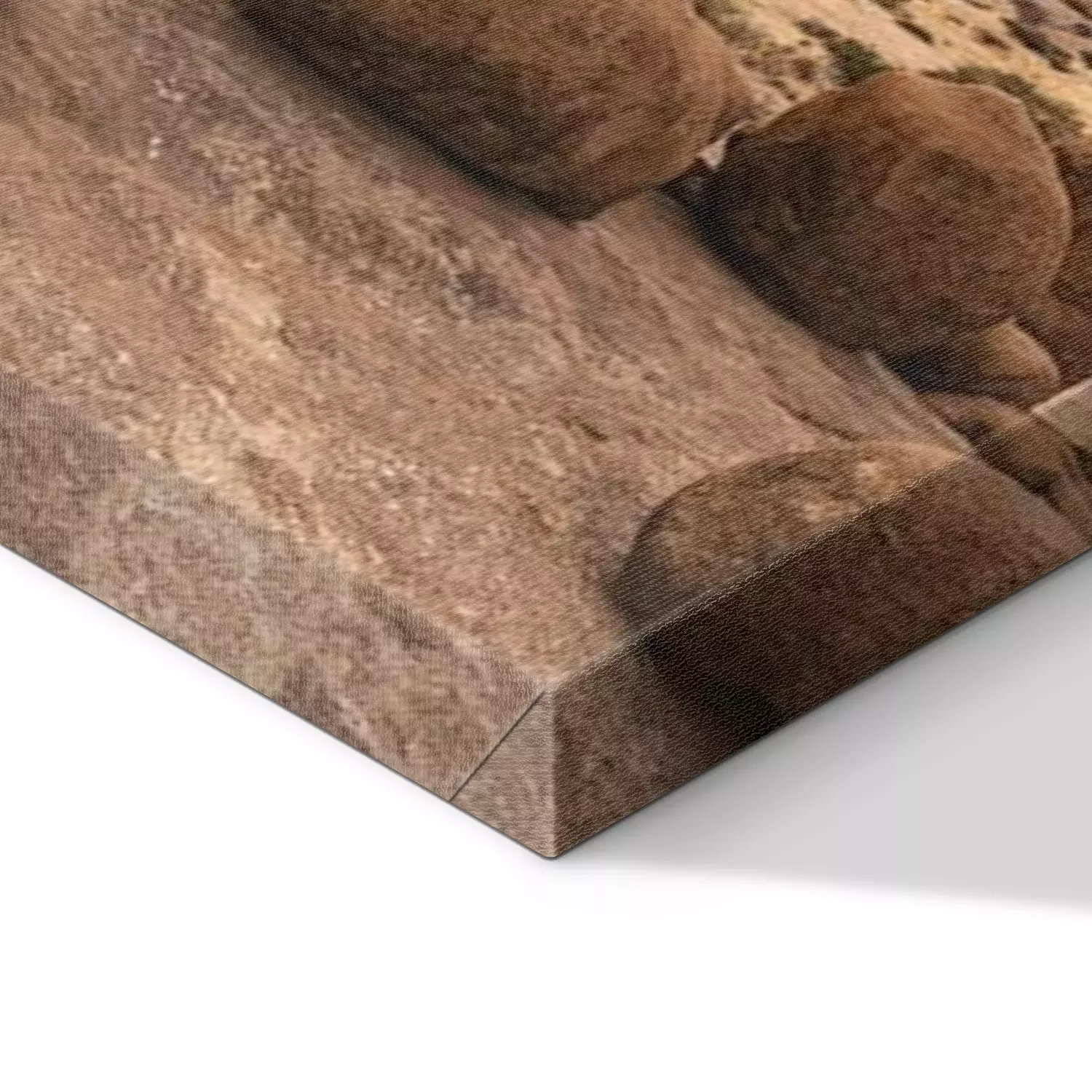 Das Motiv wird auf eine qualitativ hochwertige Leinwand gedruckt, die auf einen Blendrahmen gezogen wird. Da der Aufdruck die Seitenkanten bedeckt, muss das Bild nicht zusätzlich eingerahmt werden. Wir empfehlen außerdem Kompositionen aus mehreren Bildern, die ein harmonisches Ganzes bilden.