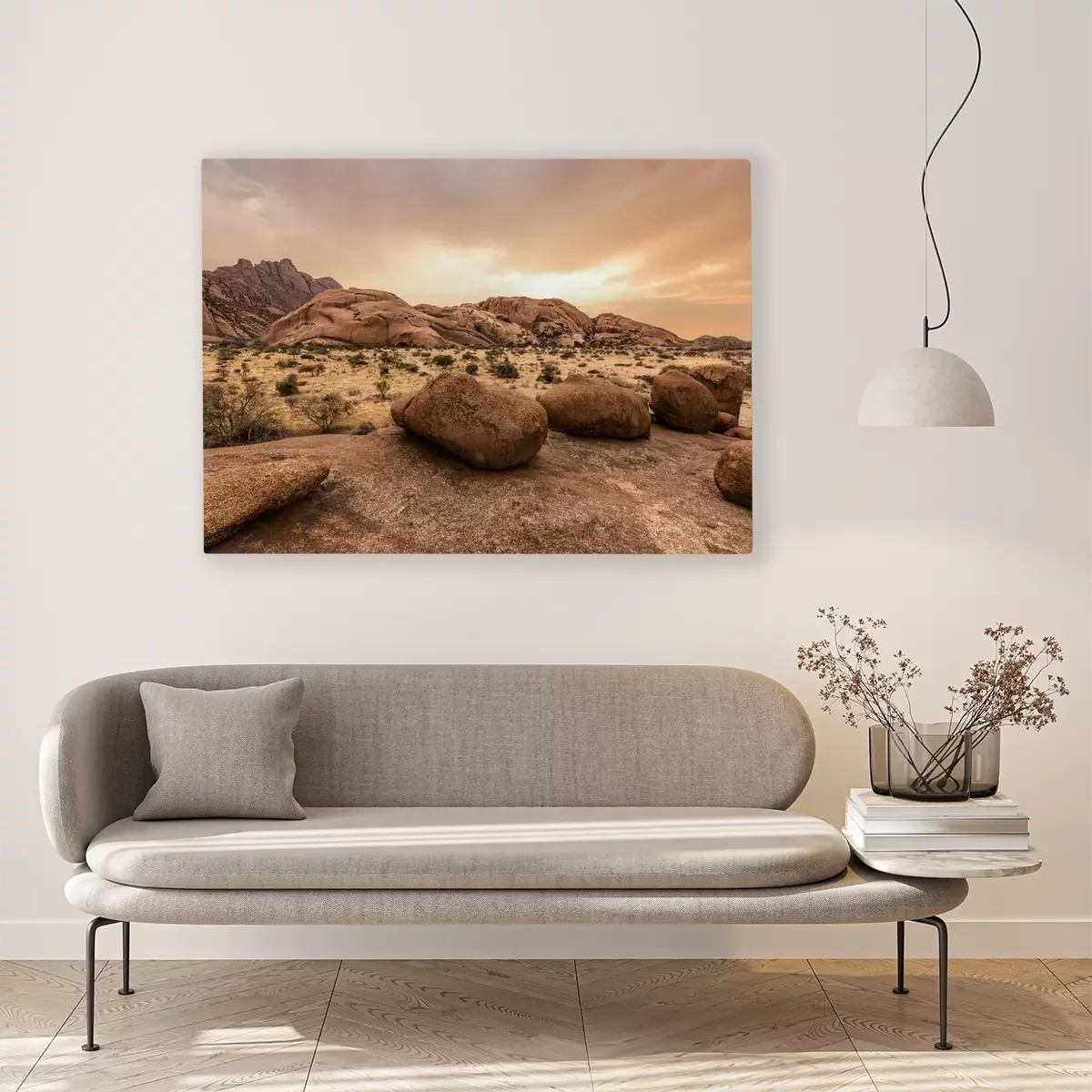 Bild Runde Steine ​​in der Namibischen Savanne bei Sonnenuntergang