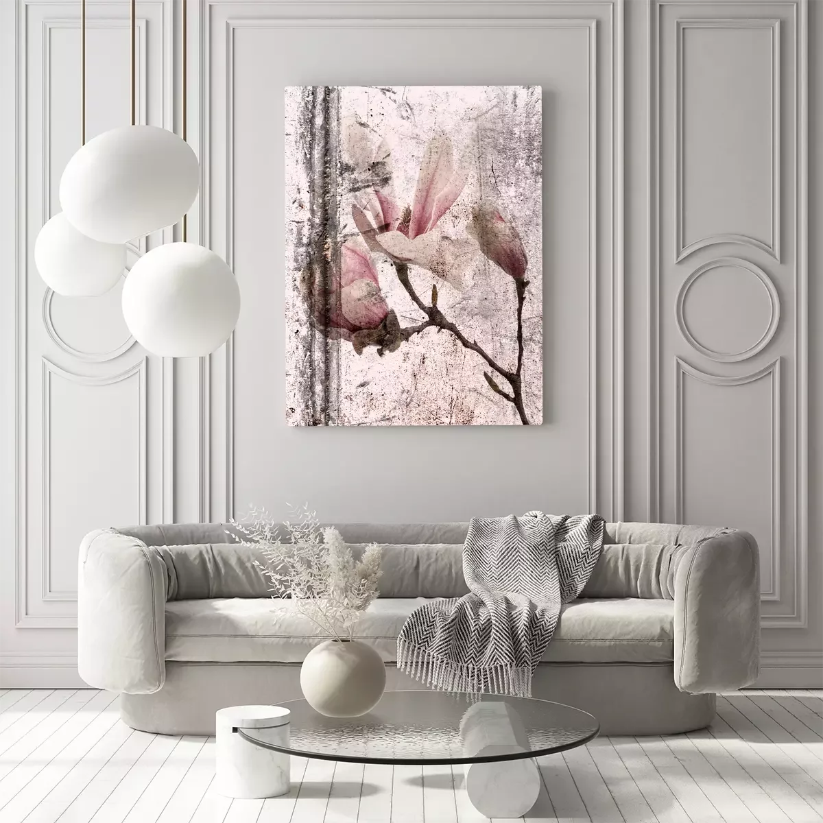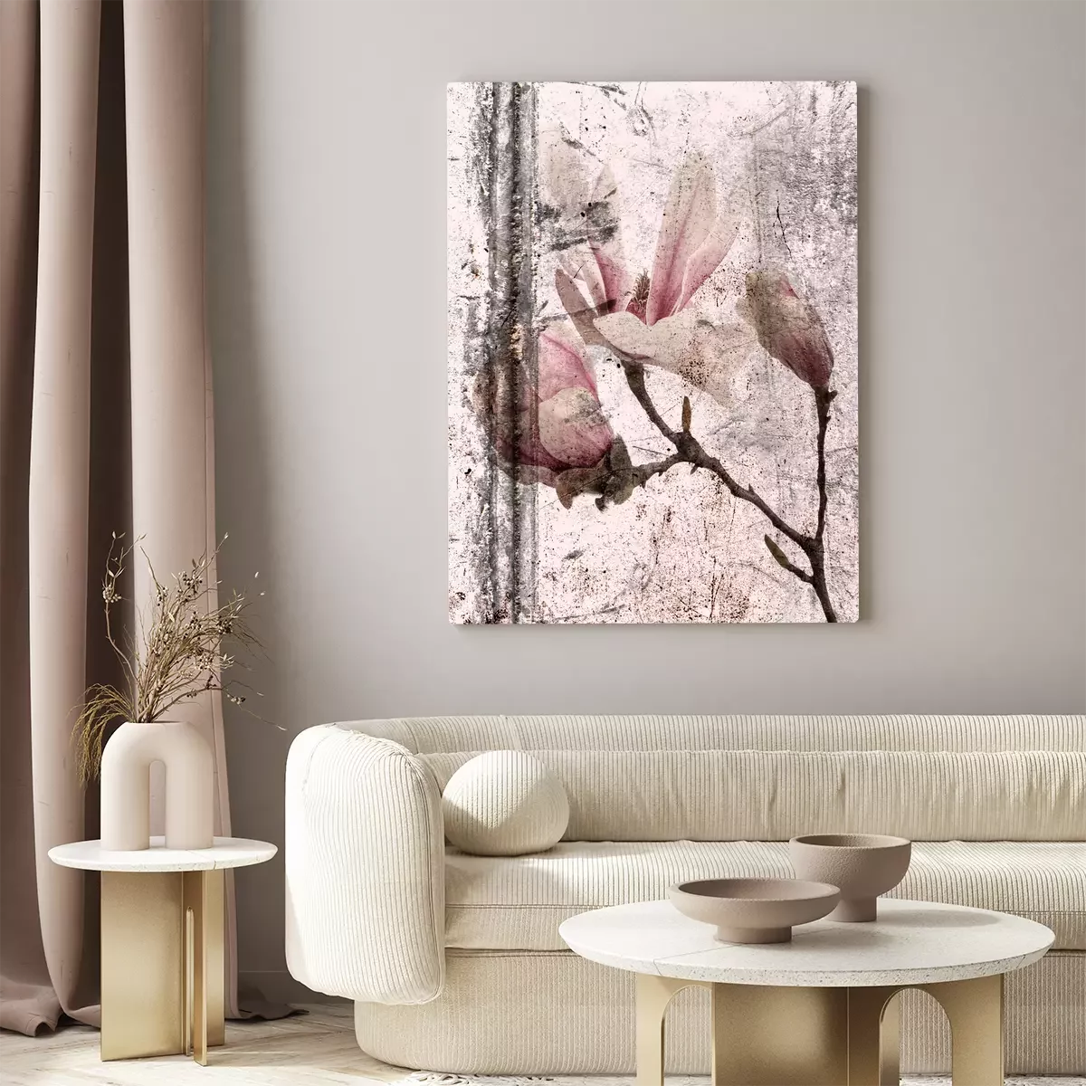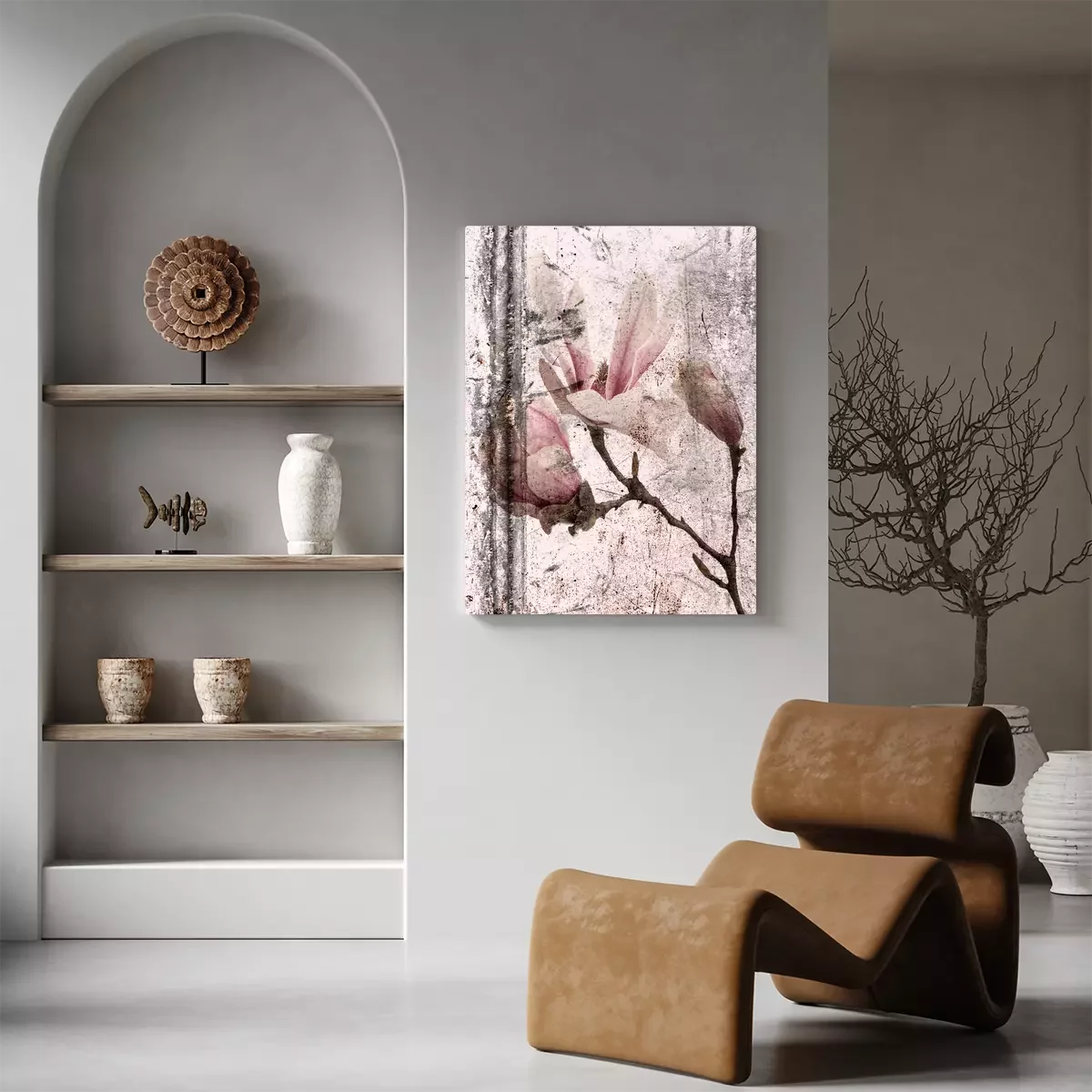 Zarte magnolienblüten auf einer gealterten oberfläche
