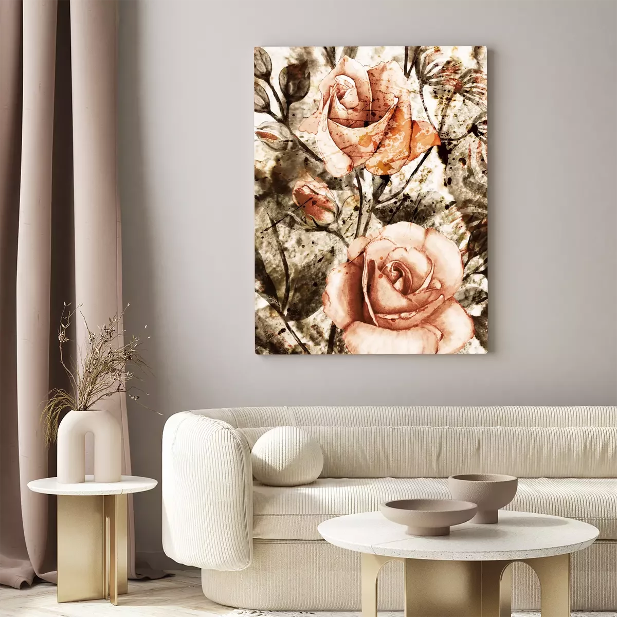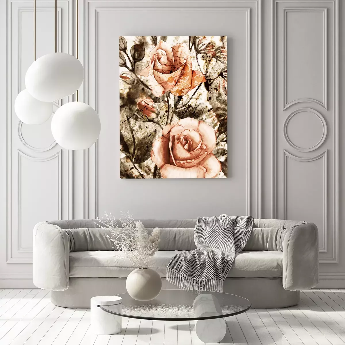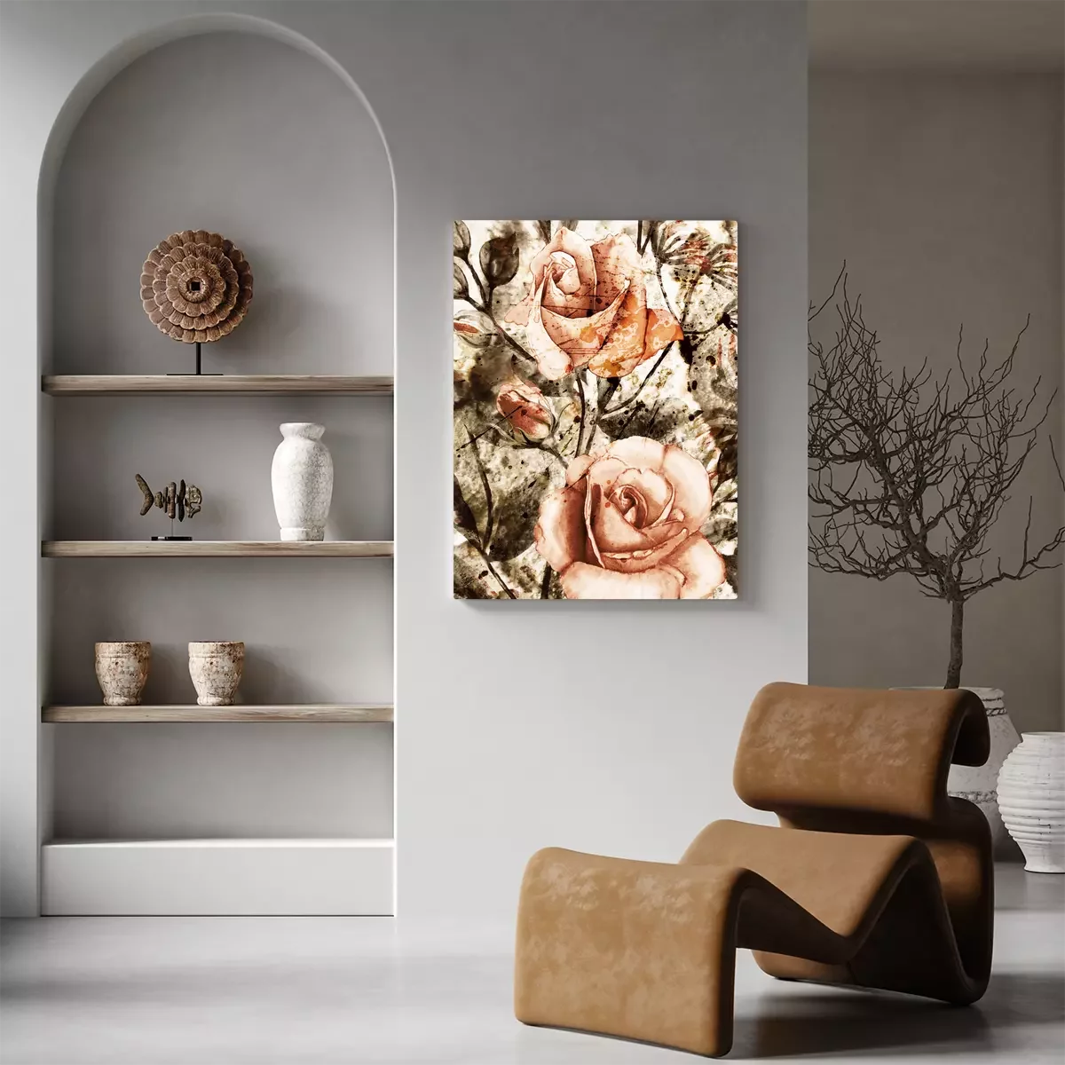 Zarte orangefarbene rosen, umhüllt von grünen blättern