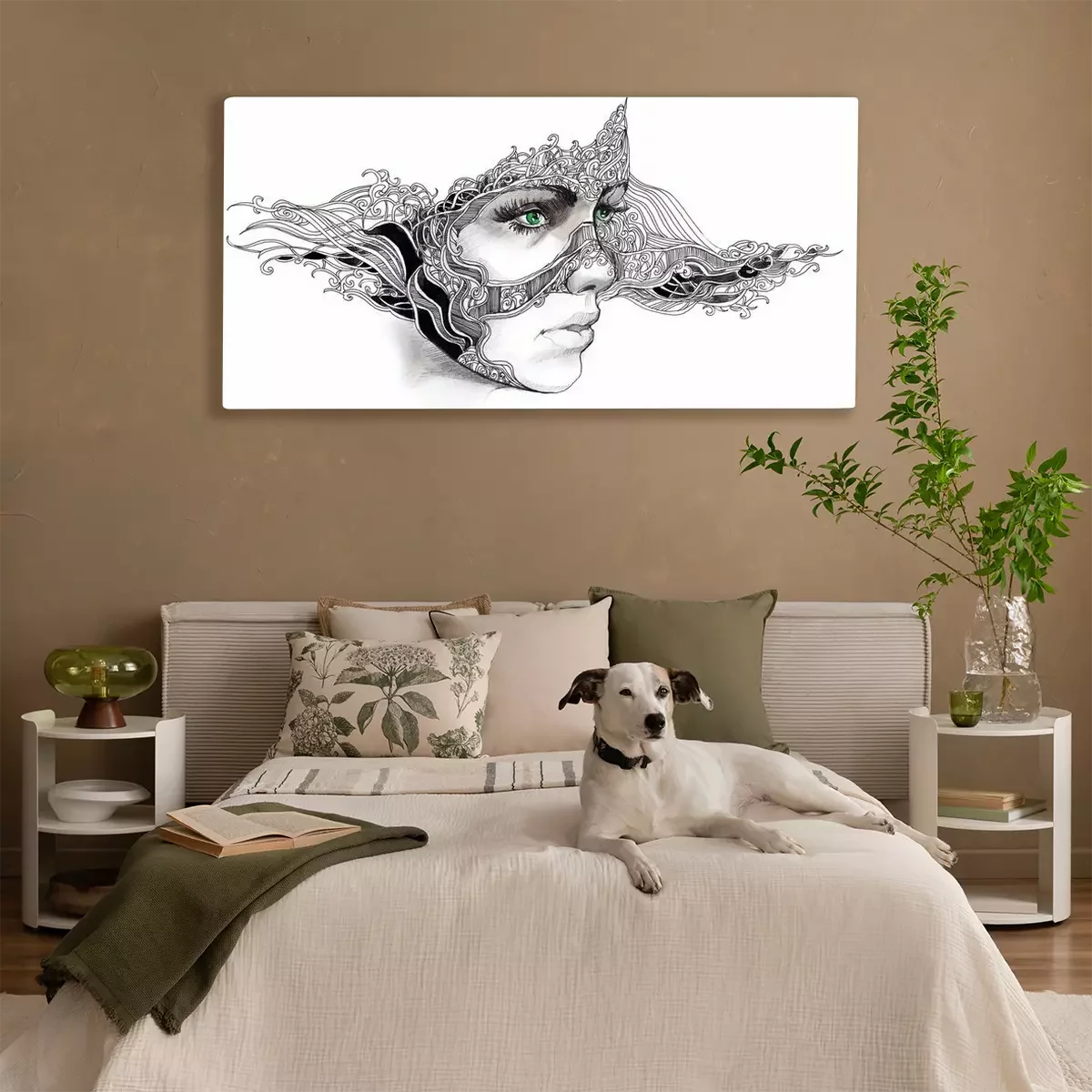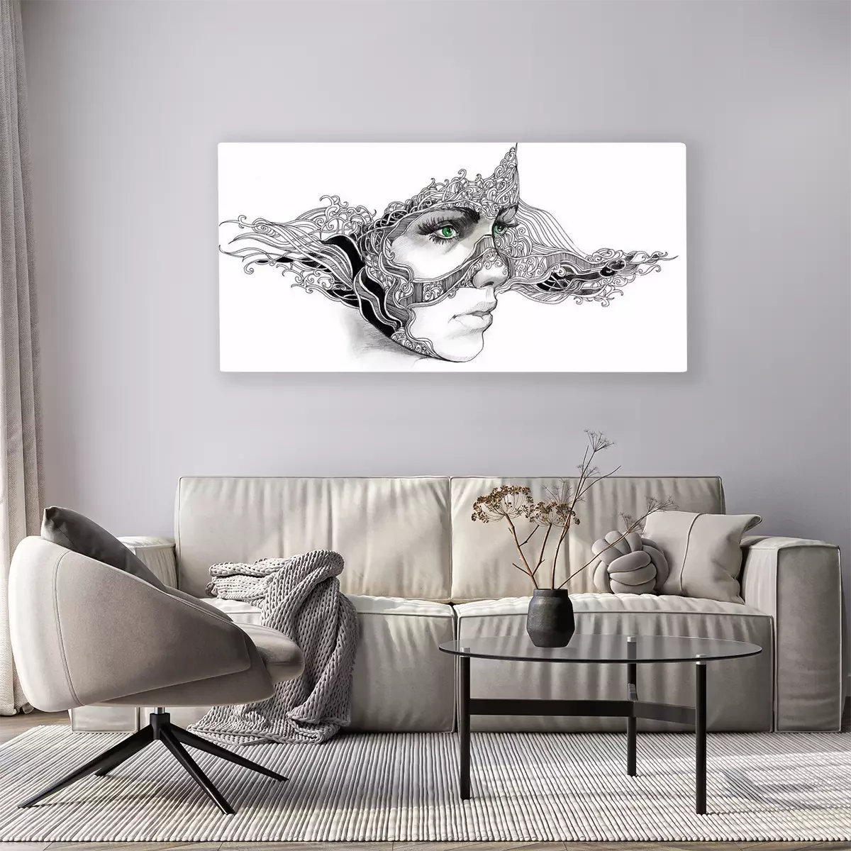 Bild Zeichnung einer Frau mit der abstrakten Maske